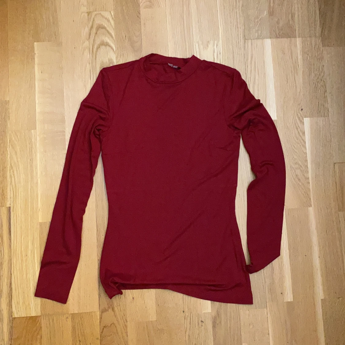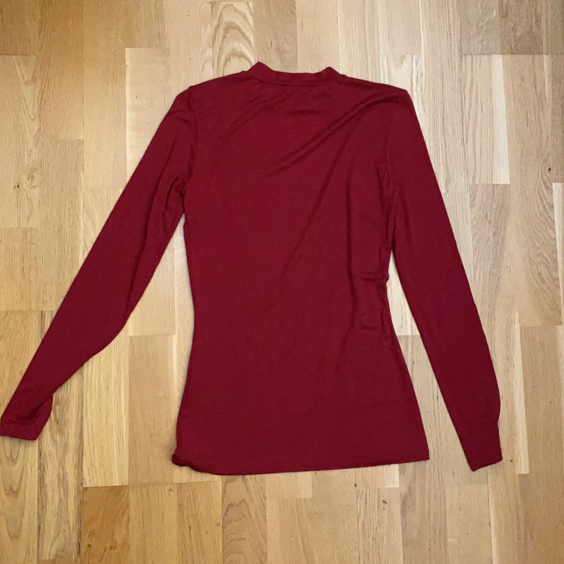 En vinröd tröja med en tajt krage. Använd 1 gång för ca 2/3 år sen. Tajt och tunn tröja.