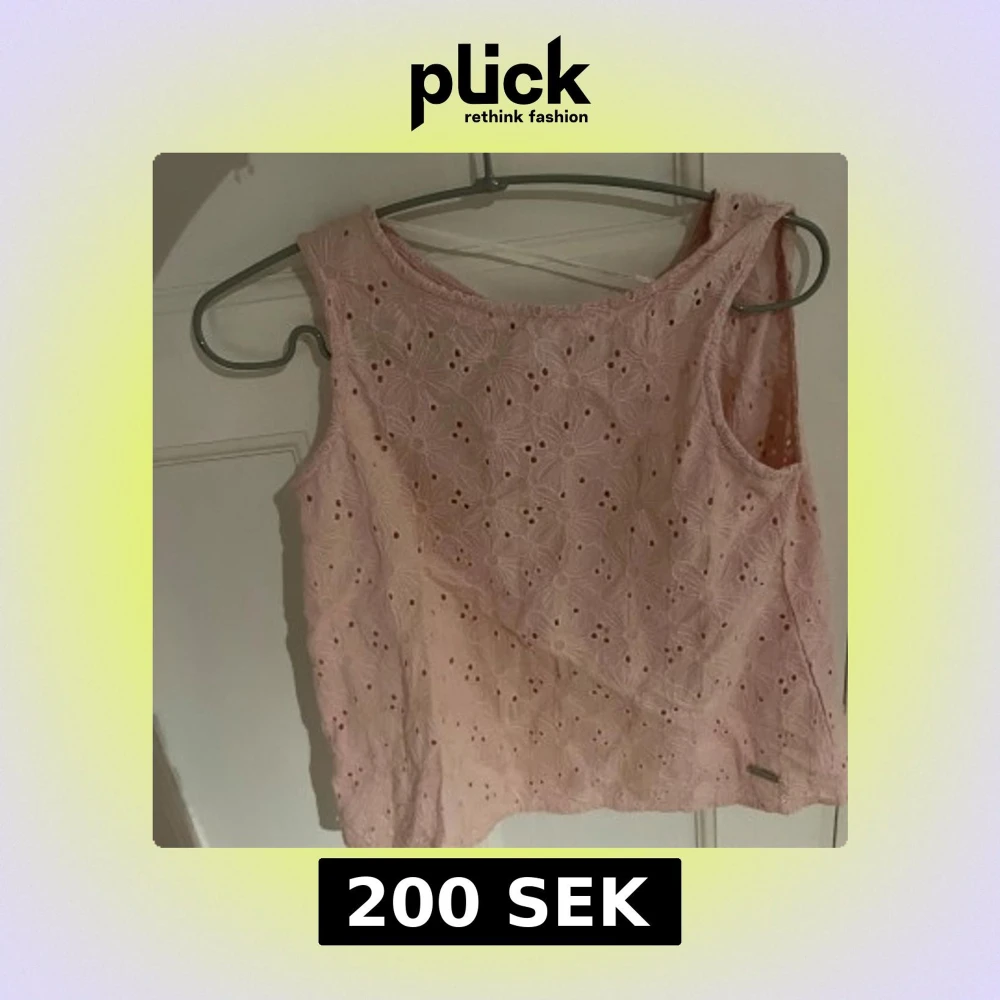 Söt rosa blus med broderade blommor och hålmönster. Den är ärmlös och perfekt för varmare dagar. Blusen har en luftig och bekväm passform.