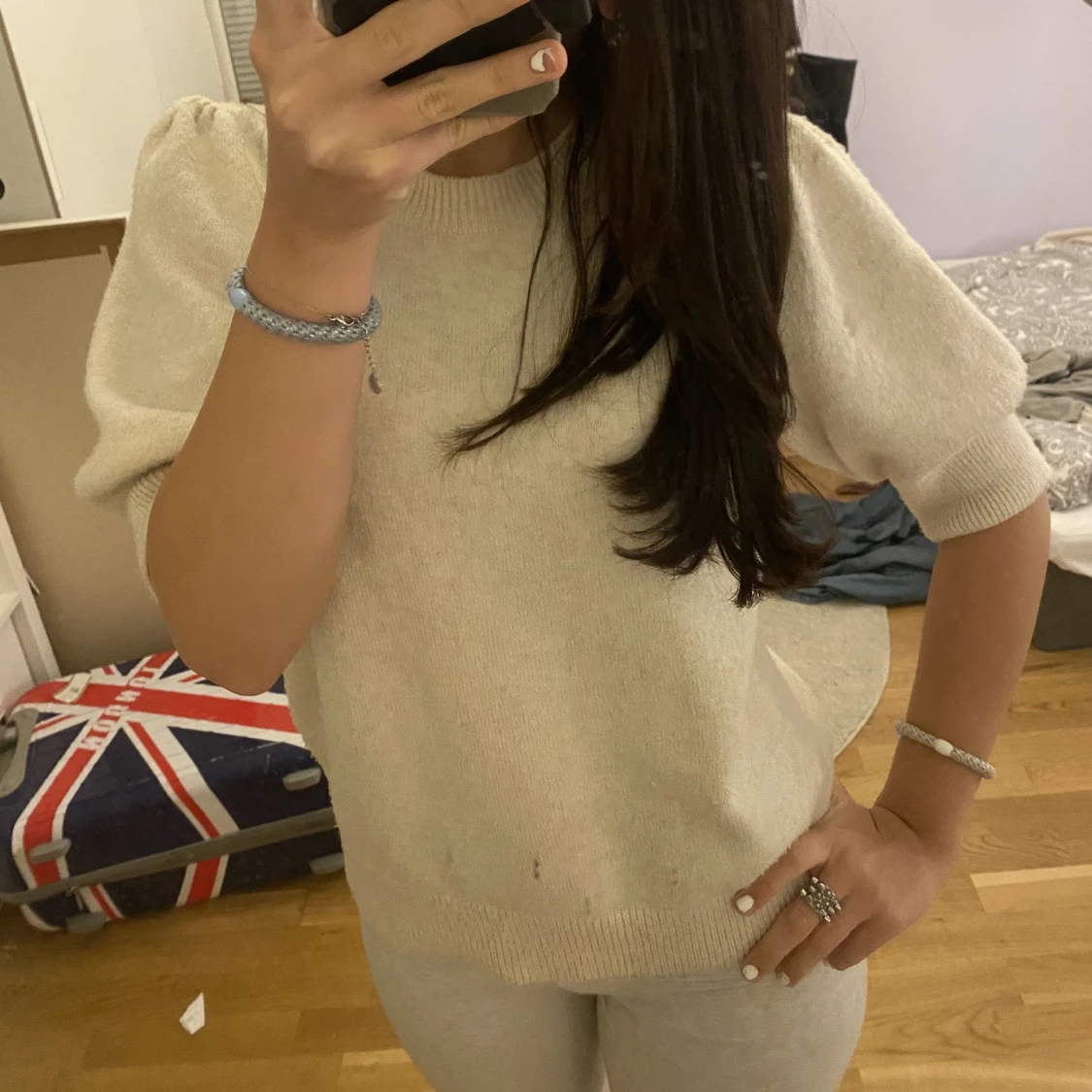 Stickad t-shirt från vero Moda i storlek M men passar S/XS, lite nopprig men annars inga skador 💓