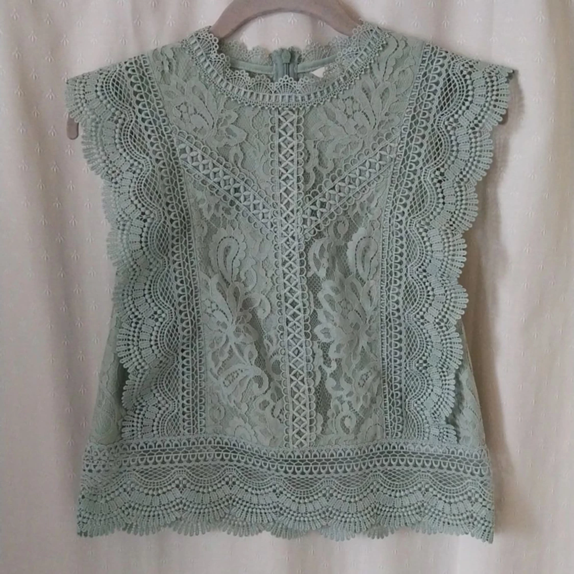(LÅNAD BILD) Finaste gröna spetstoppen från Only med jätte fina detaljer. Helt ny, inprincip oanvänd🙌😊
