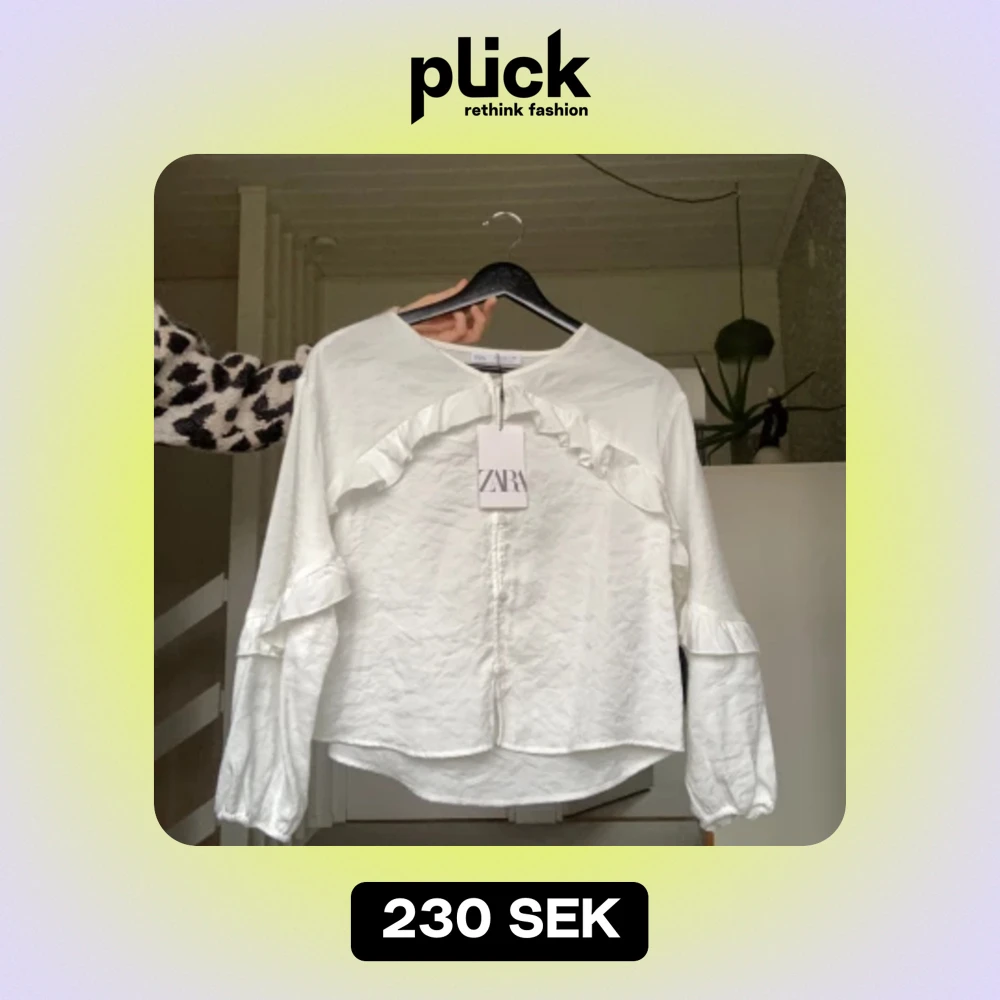 Snygg vit blus med lite volanger från zara. Helt ny med lappen kvar. Säljer då den tyvärr är för kort i ärmarna. Nypris 259 ish💕 Hör av dig för fler bilder eller frågor