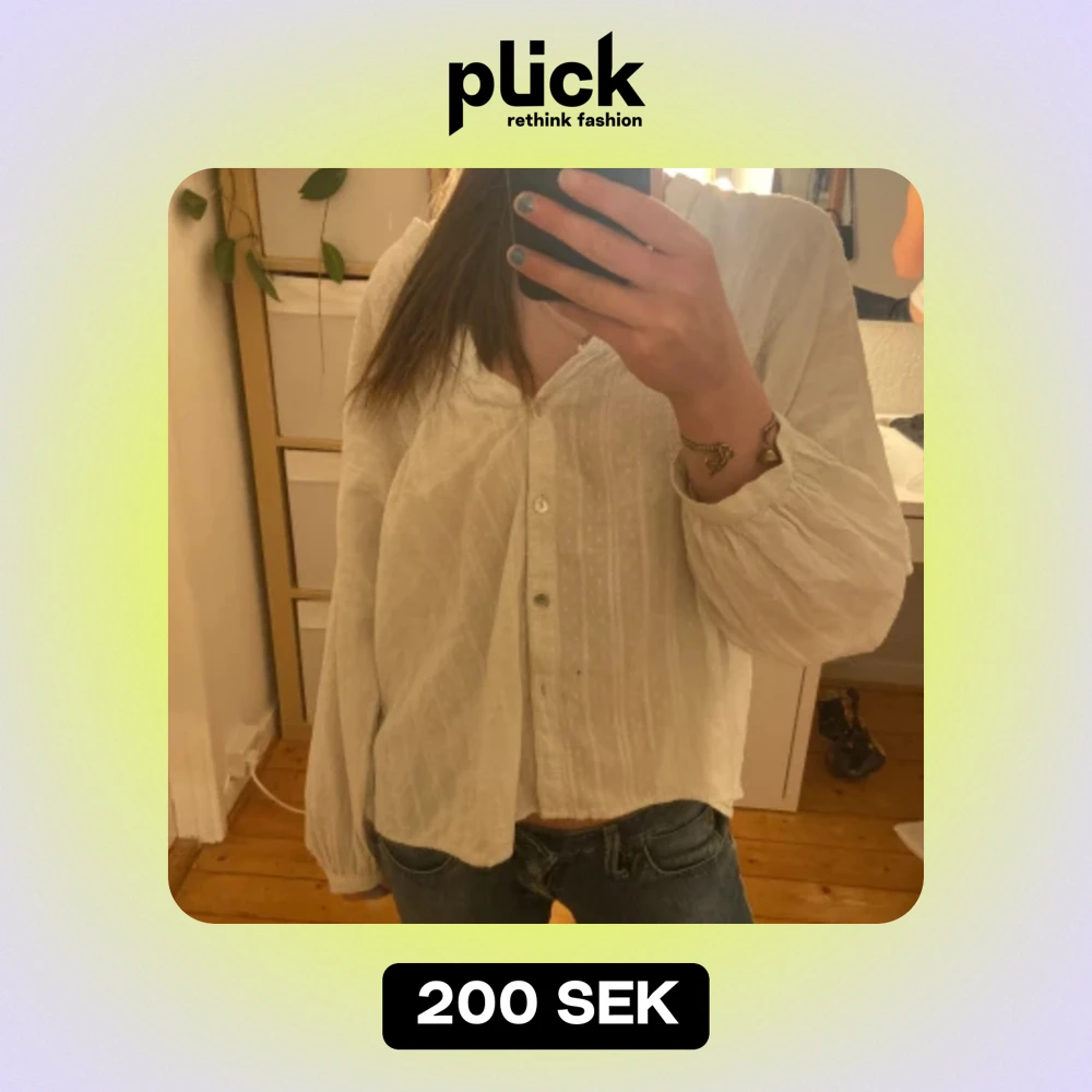 Supertrendig långärmad blus från zara i storlek M men passar passar mig som är S/Xs 💓 knappen längst ner har lossnat men annars är den i fint skick! Köpt för ca 500kr