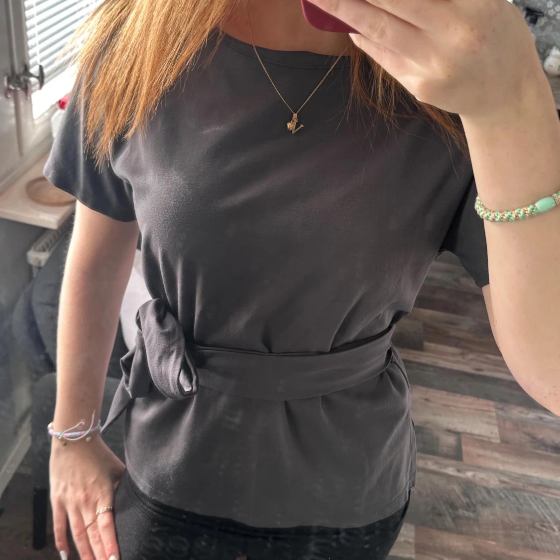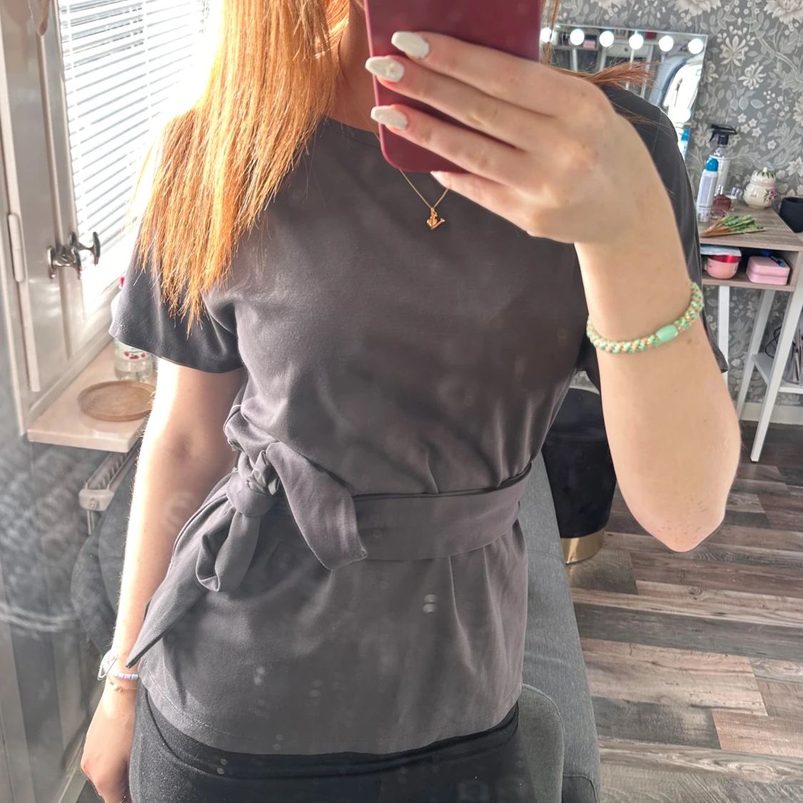 Topp ifrån Zara med ett band som går och knyta hur man vill💓 mycket bra skick storlek Xs men är lite pösig så passar både xs/s