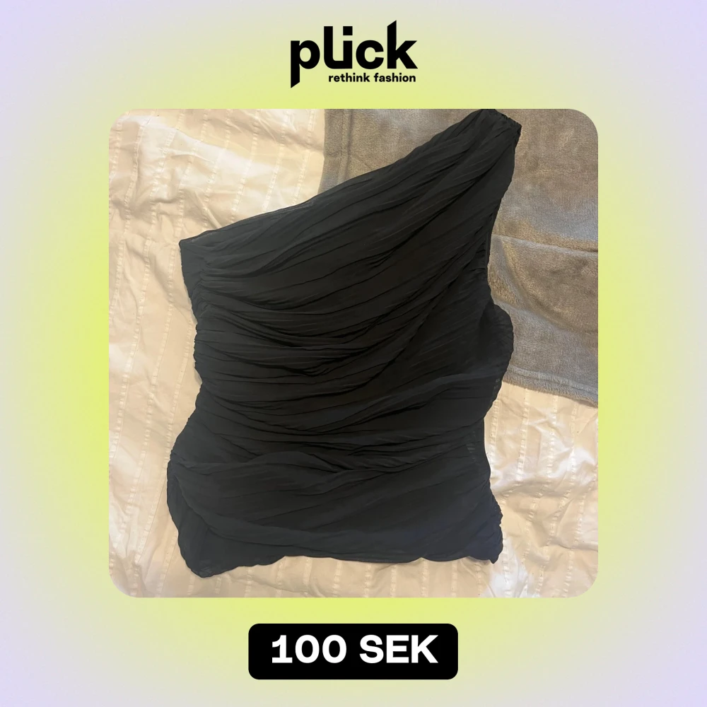 Snygg svart oneshoulder blus från Zara i ett draperat tyg. Den är i bra skick med en liten reva på innertyget som inte syns när man har på sig den. Använd fåtal gånger.