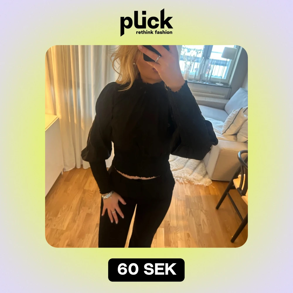 Svart blus från ginatricot med åtsitttande midja och puffärm💗