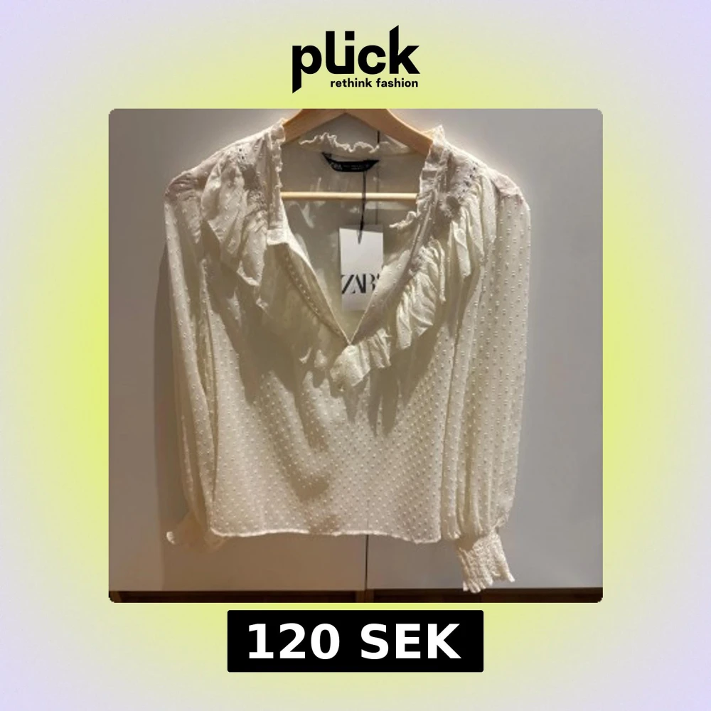 Blus från Zara. Aldrig använd och har lappen kvar. Är i storlek L men skulle säga att den passar till en M.