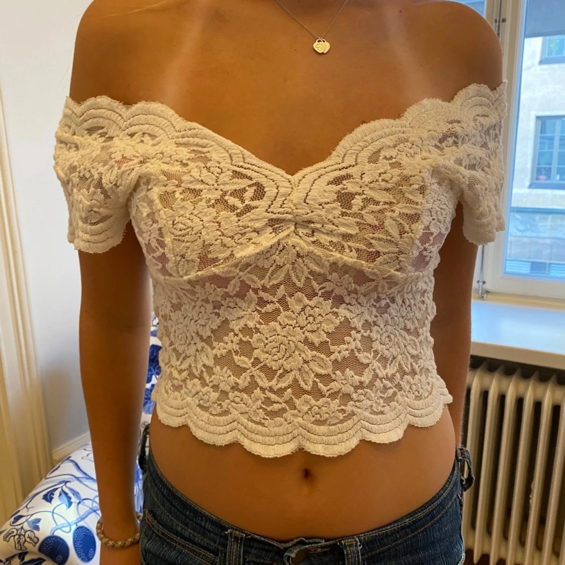 Så snygg spetstopp som går att ha på två olika sätt! Storleken är M men jag skulle säga att en Xs, S elr M passar för att den är stretchig i materialet. Använd 1 gång🤍🤍