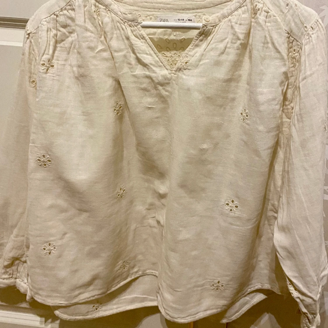 Söpersöt blus från Zara🥰 Vit/cream beige! Den är i storlek 13-14 är (164), men skulle säga att den passar allt från XS-M
