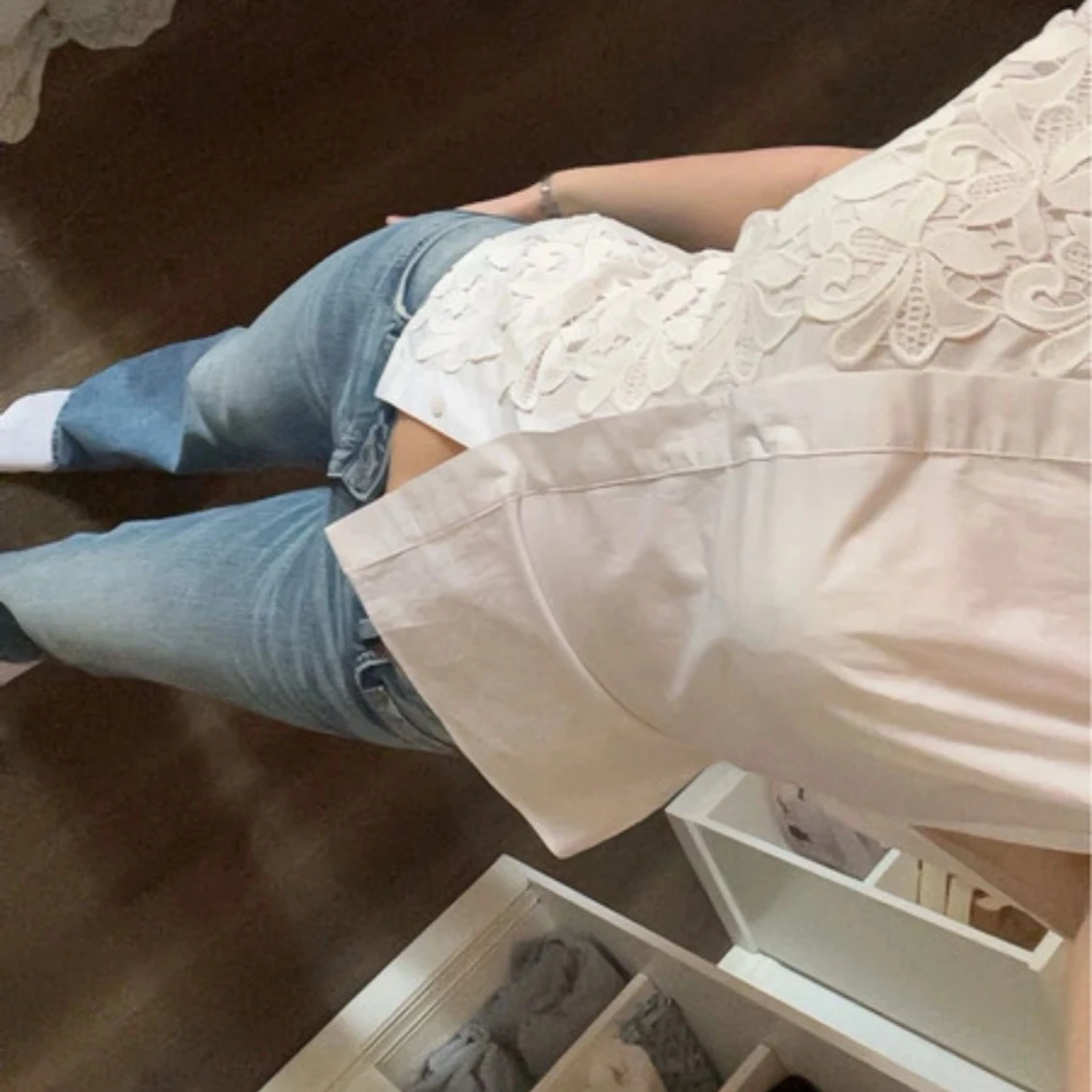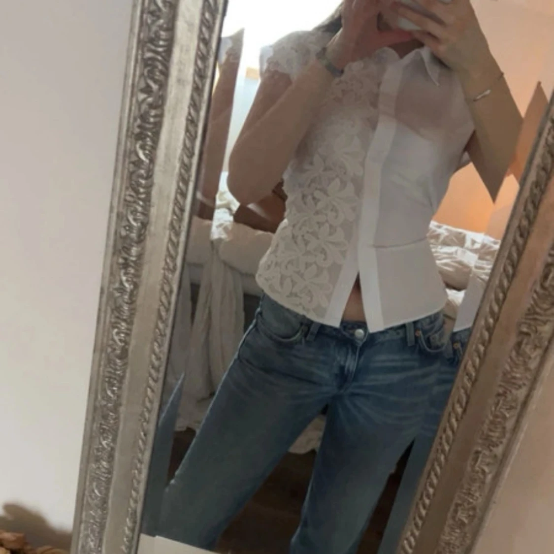 Blus med gömda knappar framtill och med ett band baktill som jag på bilden knutit åt, det går att få den tajtare och lösare.