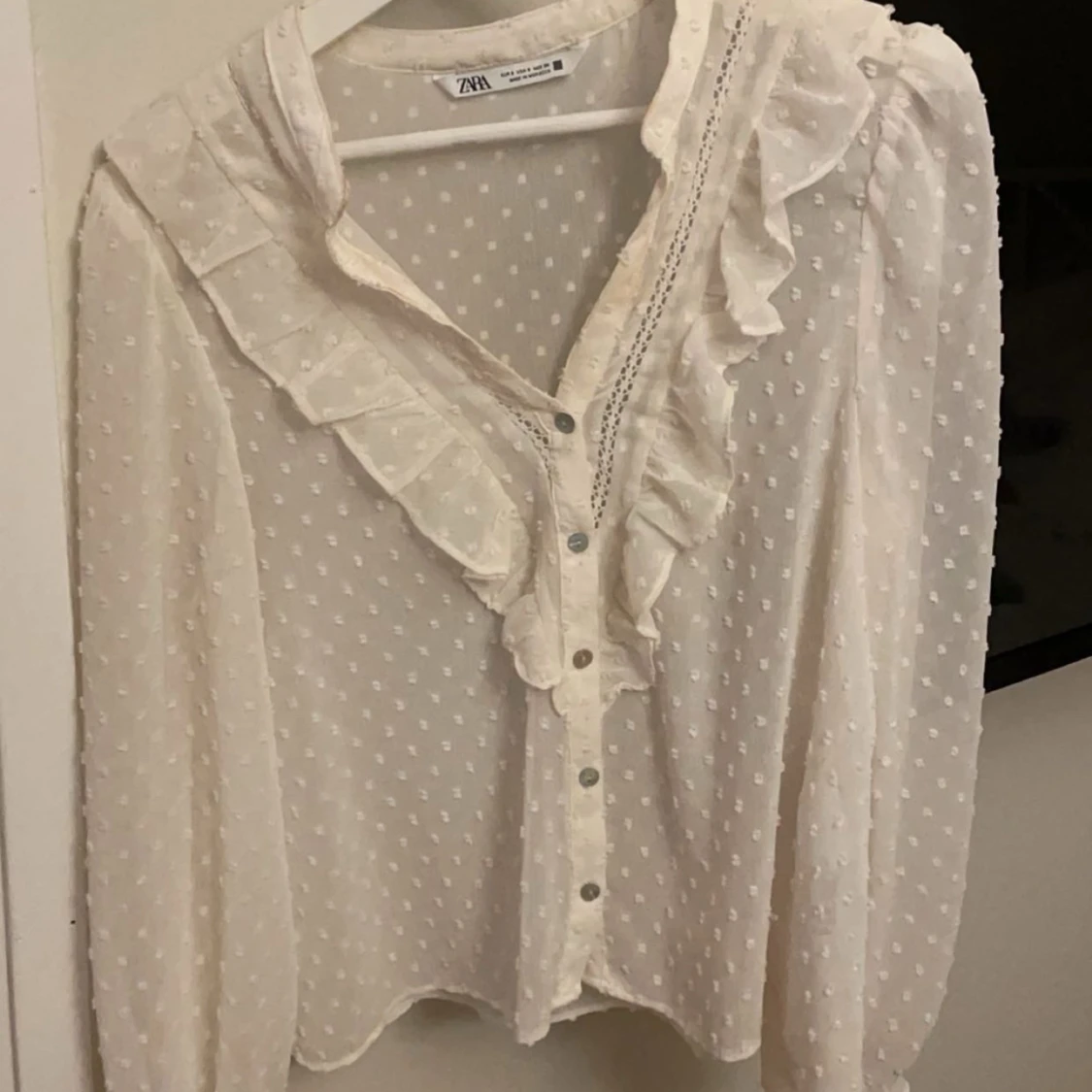 jättefin blus från zara som jag aldrig använt. på andra bilden är de en bild som är lik tröjan
