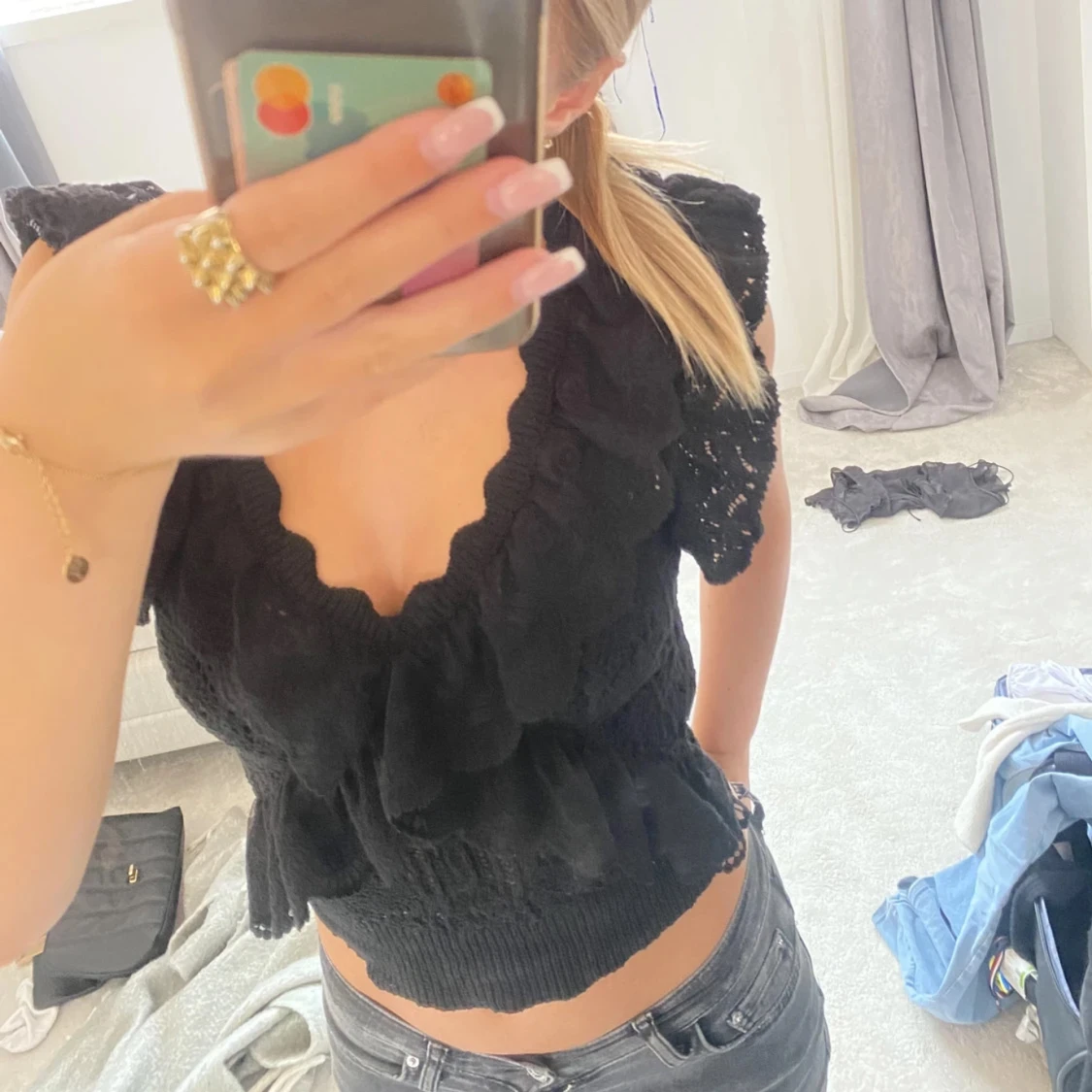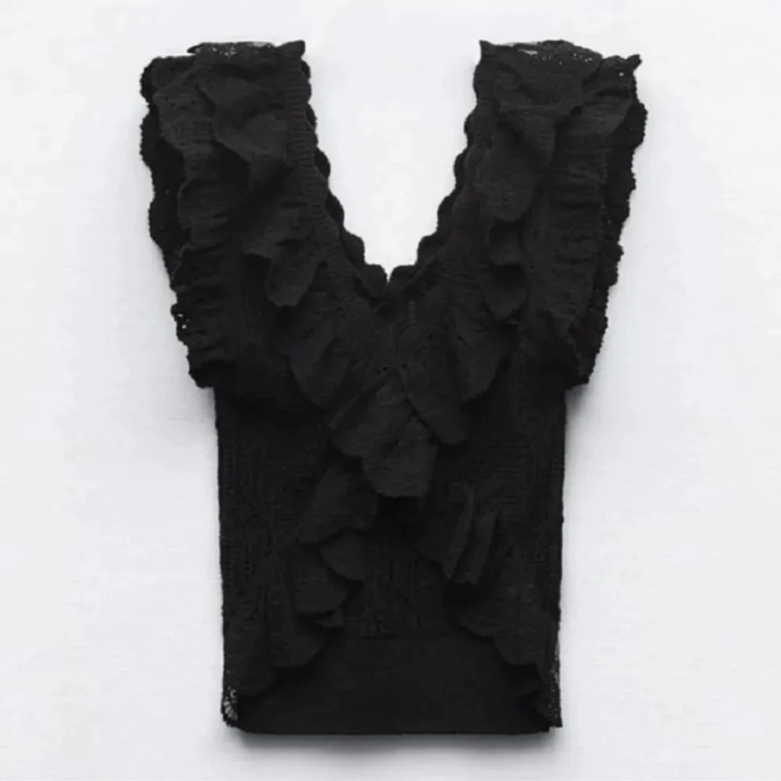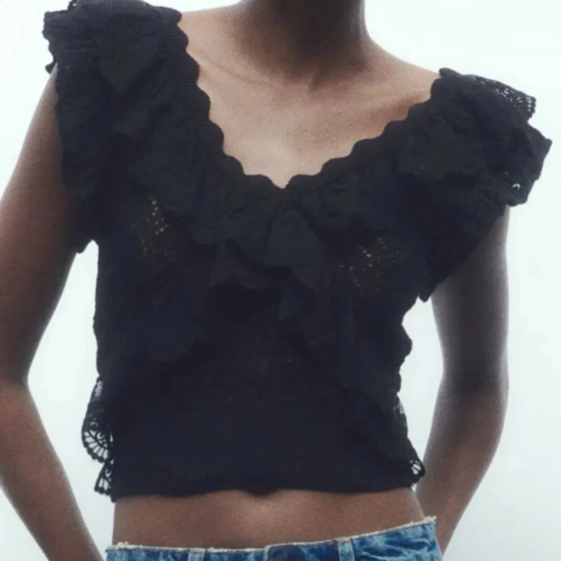Svart Zara topp, jättesnygg och skön. Passar till fest men även skola, kostade ca 700 kr. Storlek S säljer då jag inte använder längre! Skriv prisförslag💞 lånade bilder