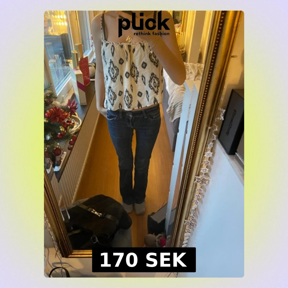 SÀljer en vit linnetopp med svart grafiskt mönster och tunna flÀtade axelband. Toppen Àr croppad och har en luftig passform, perfekt för varma dagar. Materialet kÀnns lÀtt och svalt mot huden. Snygg att styla med jeans eller shorts!