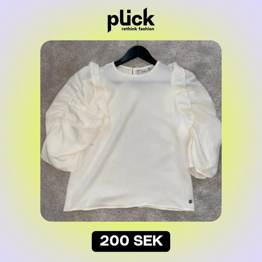 Vitbeige volangblus med volangärmar, i nyskick