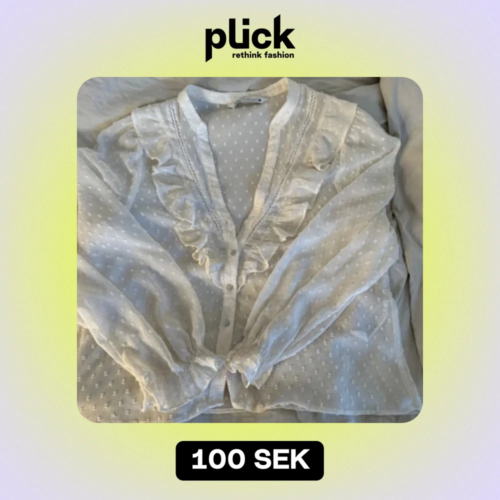 Jätte fin blus från ZARA den har två defekter, bild 2 är en liten defekt längst ner i armen som man inte ser så mycket. Bild 3 så är de en knappt längst upp som försvunnit❣️