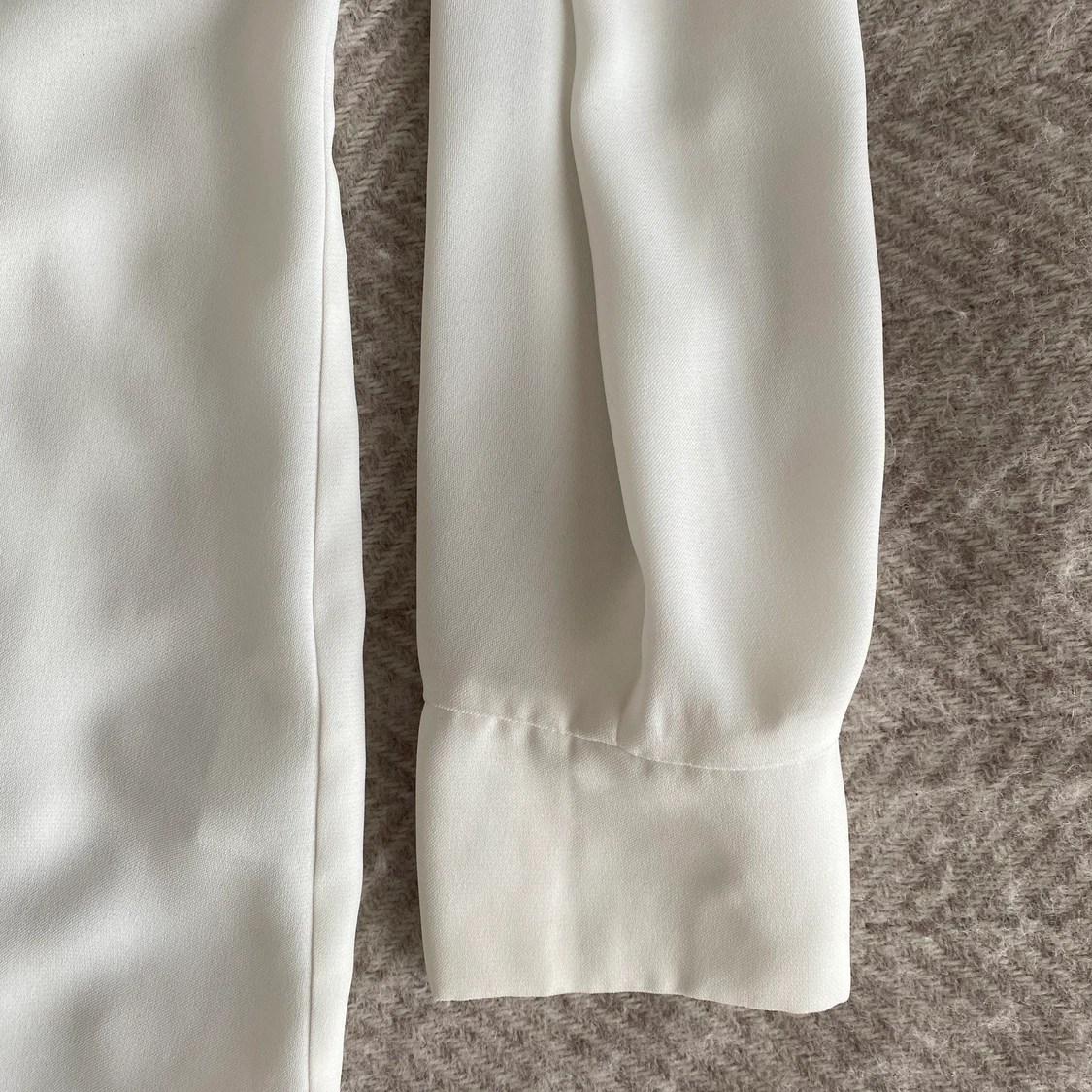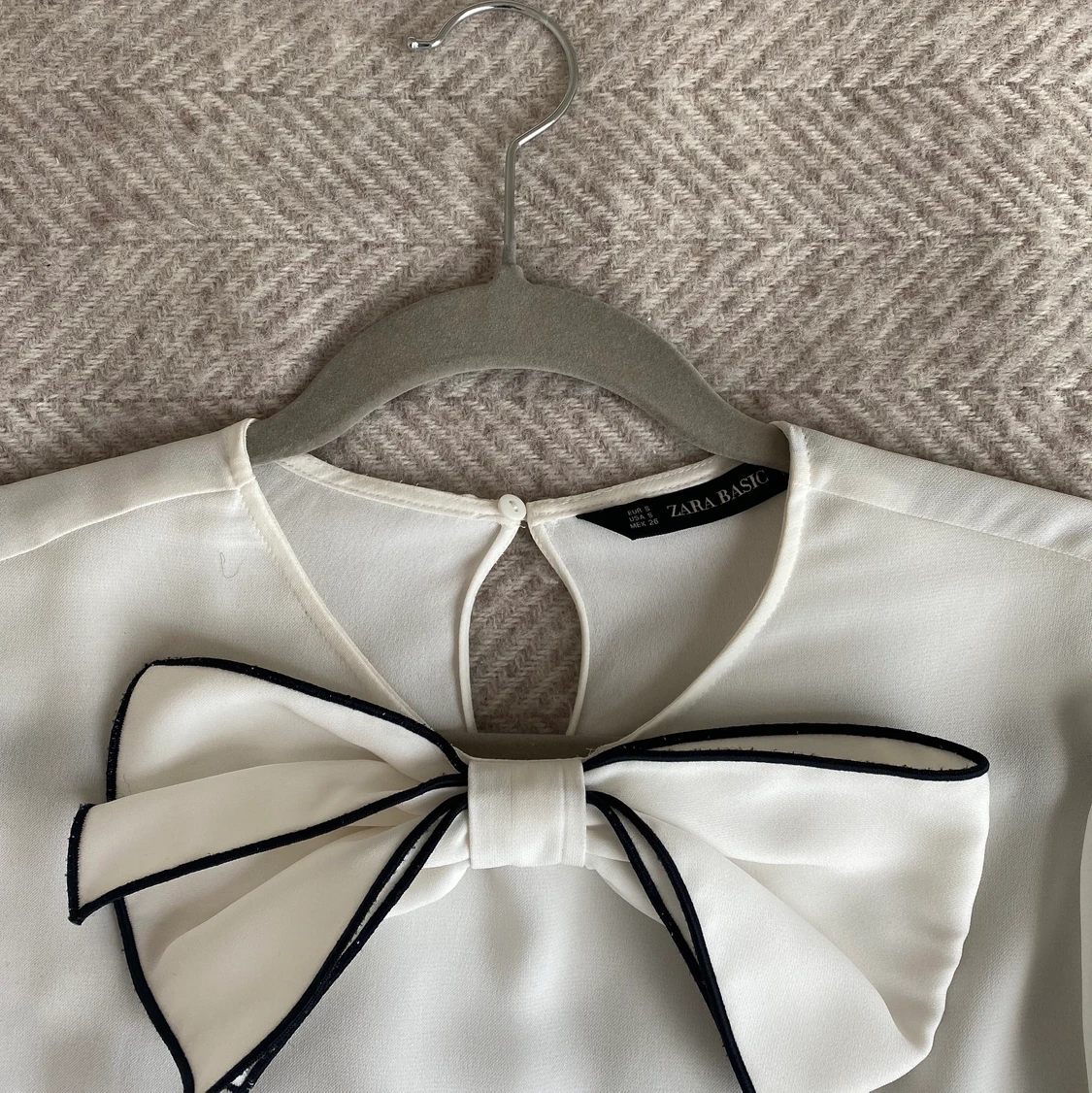 Söt vit blus med rosett från Zara i storlek S. Den är i fint skick och har ett fint fall.