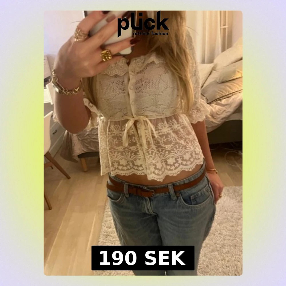 Supersöt vit blus i spets med knappar framtill och en rosett i midjan. Den är supersött från zara med trekvartsärm och spetsdetaljer🩷