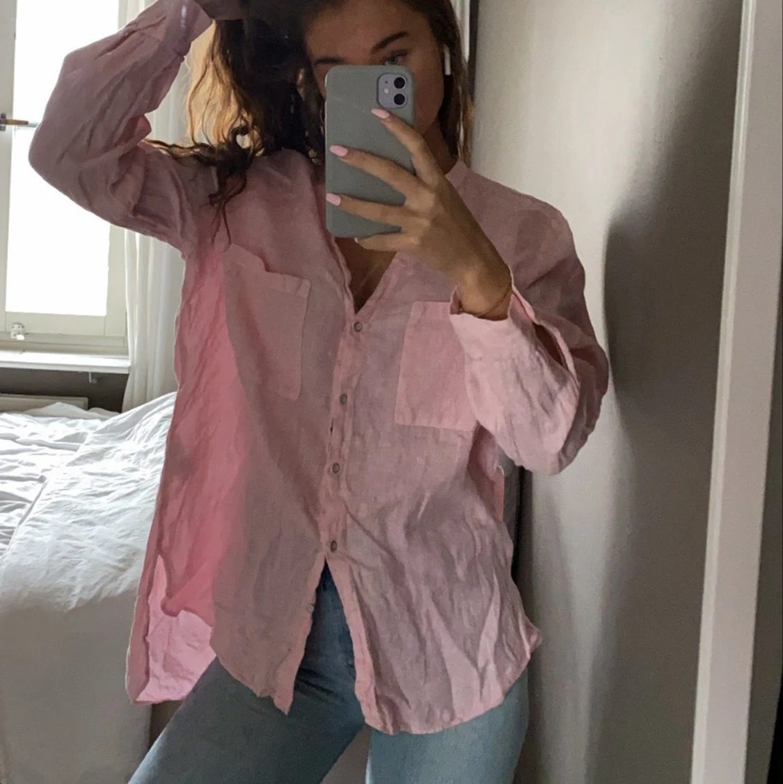 Rosa blus i linne, köpt på zara men aldrig använd, L i storleken men jag har Xs 💖💗💓💘💝💕