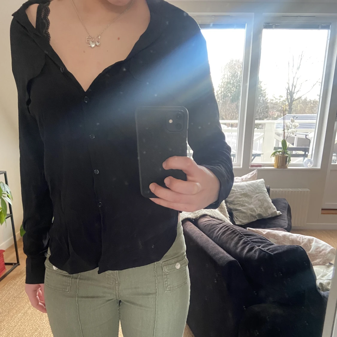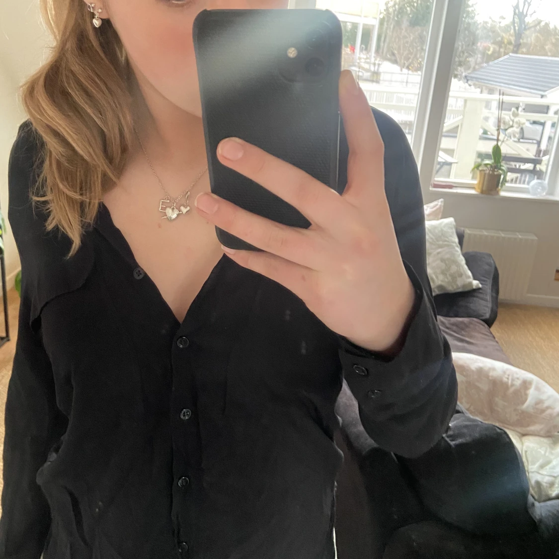 Jättesnygg svart kofta med två fingrar vid brösten💓💓