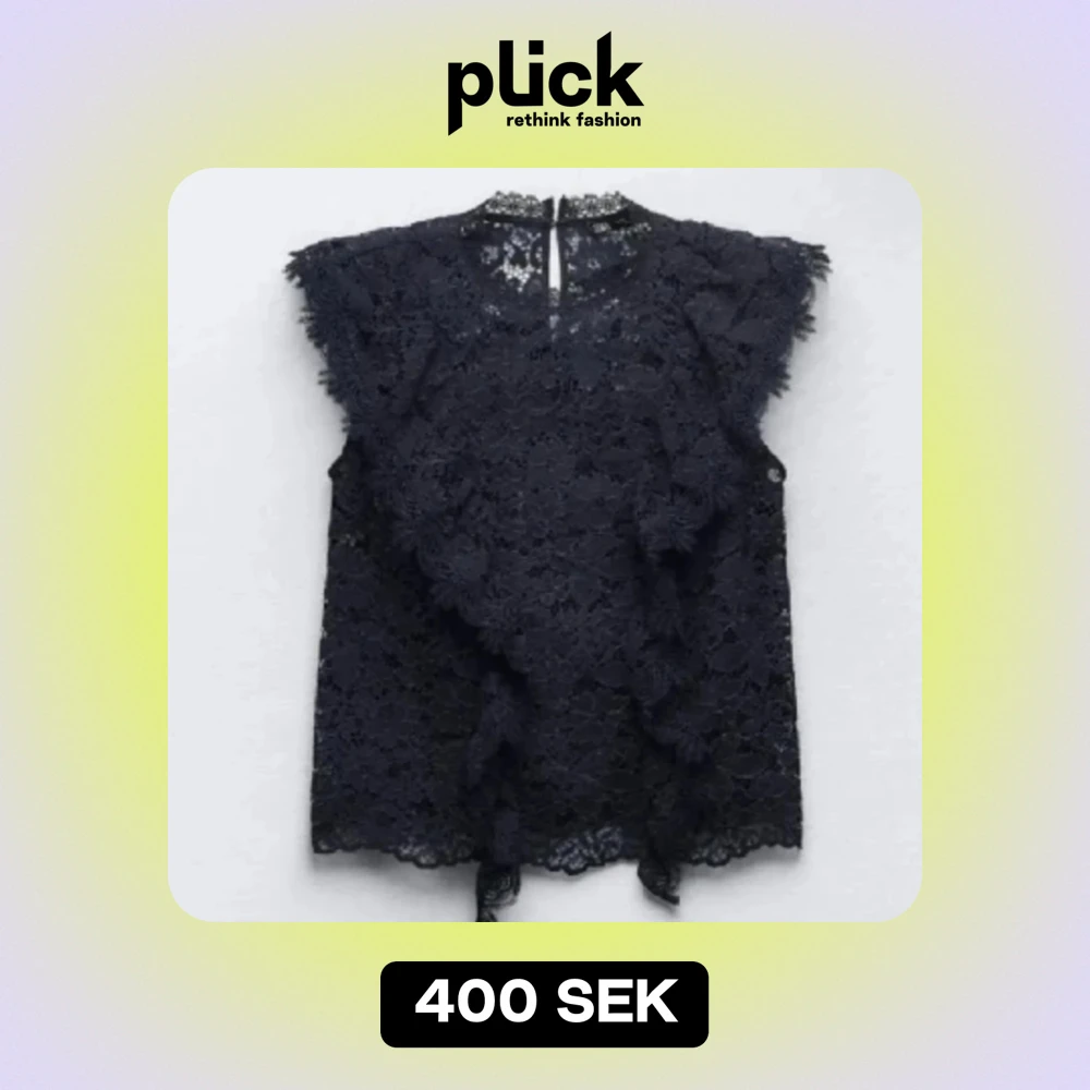 Säljer denna helt nya marinblåa zara toppen i spets med volanger, med prislappen kvar!