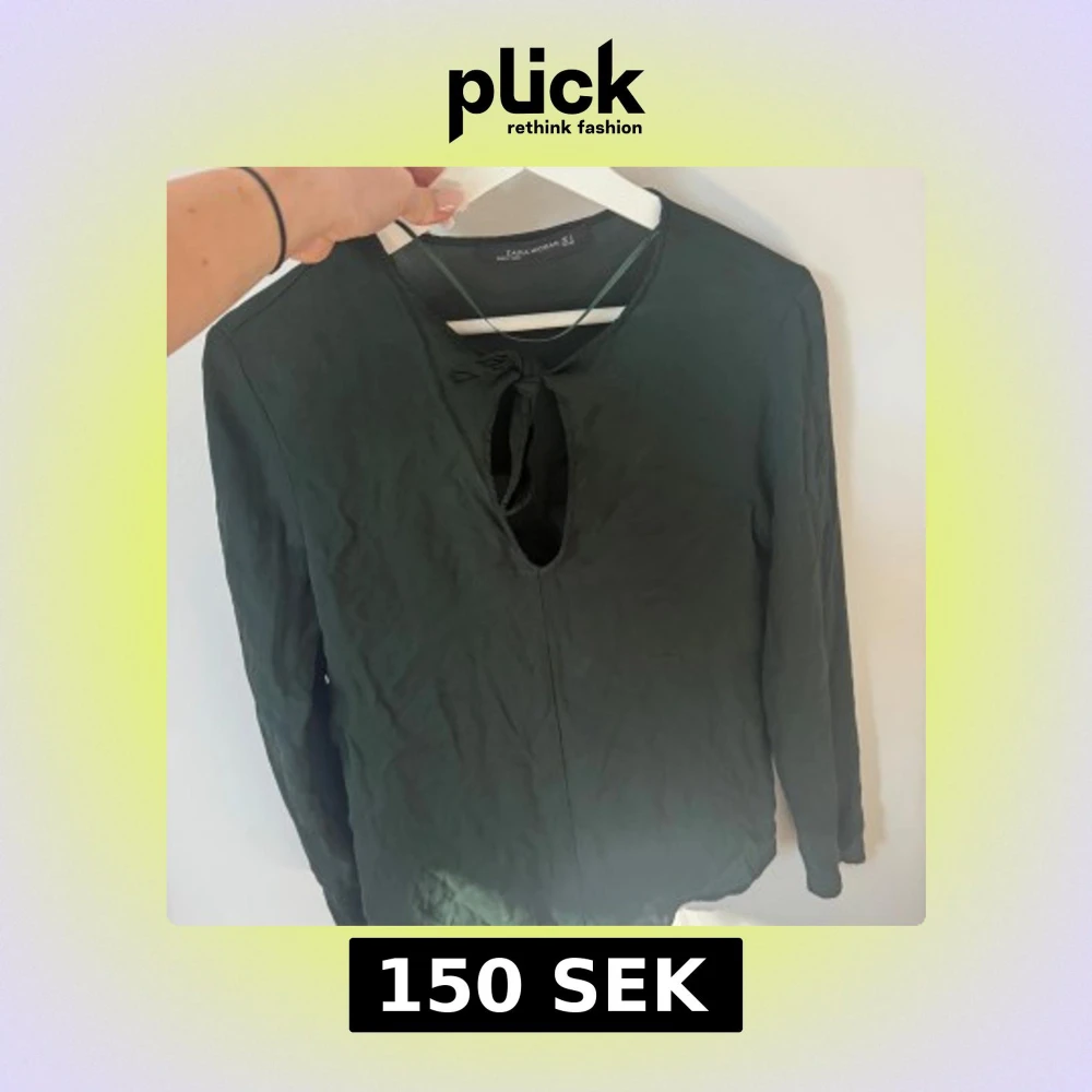 mörkgrön blus från Zara Woman. Blusen har långa ärmar och en knytning framtill. Gott skick