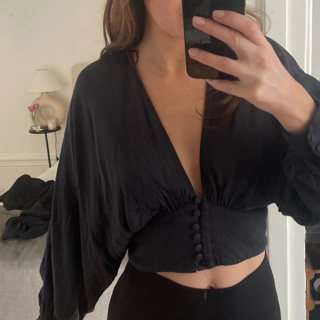 Blus från zara i storlek XS. Knappen längst ned saknas, inget man tänker på så mycket.