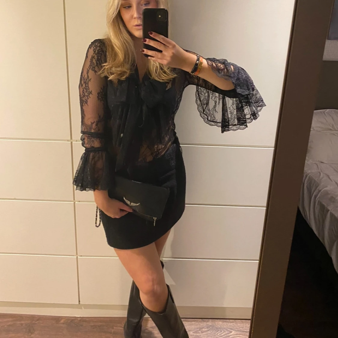 Svart spets blus från Zara! Köpt i Rom på Zara för 699 för ca två år sedan, så finns en kvar på hemsidan 🤩