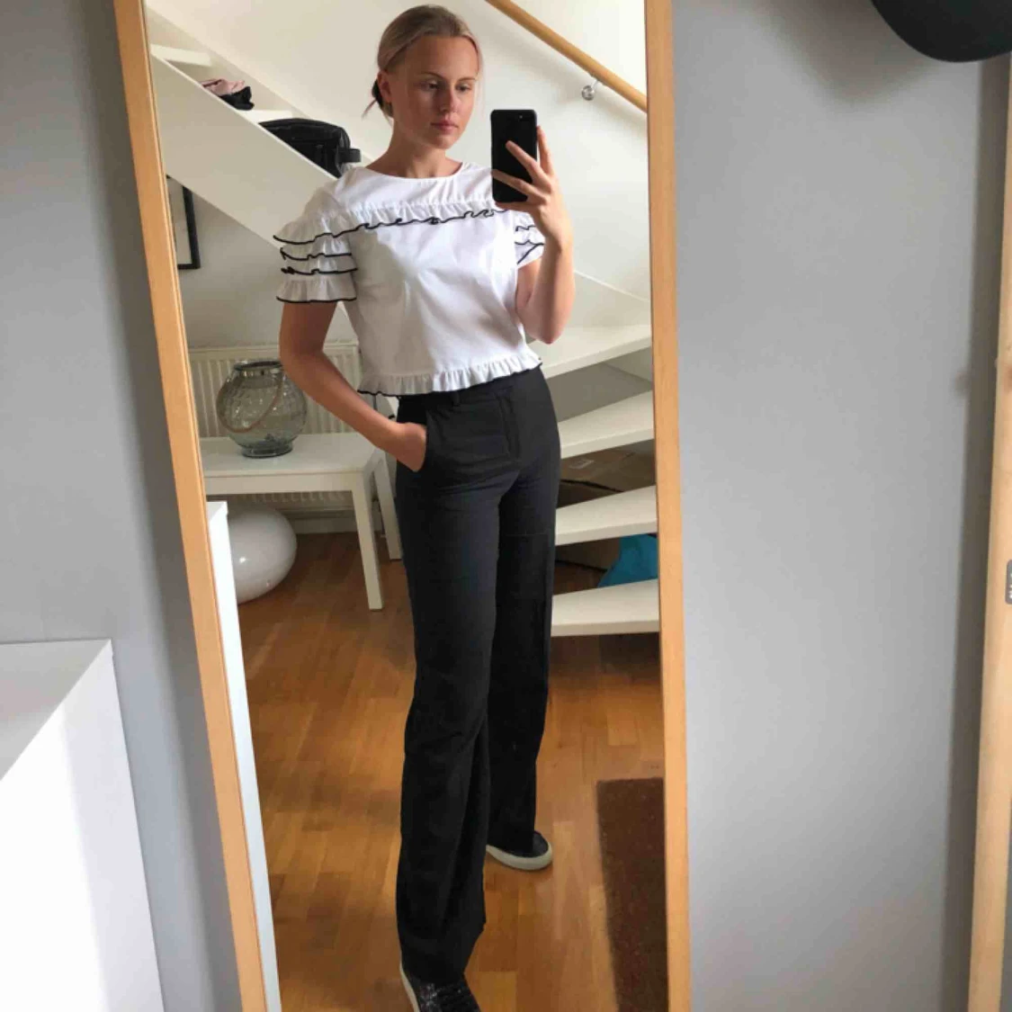 Vit blus med svarta detaljer från zara med knäppning i ryggen. Storlek S🖤🖤