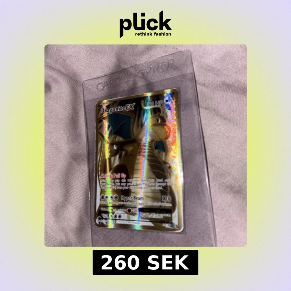 Snygg och glittrande Dragonite EX Pokémonkort med 180 HP och Hyper Beam-attack. Perfekt för samlare och Pokémon-fans som vill ha något unikt i sin kortsamling. Kortet är skyddat i en Cardking Pro sleeve och är i fint skick.