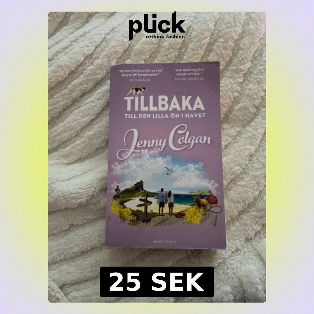 En feelgood-roman av Jenny Colgan med lila omslag och illustration av hav, blommor och människor på en ö. Boken handlar om livet på en liten ö utanför Skottlands kust, relationer och nya utmaningar. Perfekt för dig som gillar mysiga berättelser och romantik.
