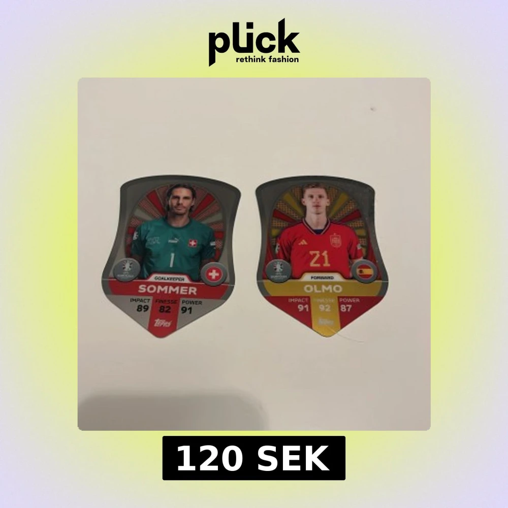 Två coola samlarkort från Topps UEFA EURO 2024 med fotbollsstjärnorna Yann Sommer (Schweiz, målvakt) och Dani Olmo (Spanien, anfallare). Perfekt för dig som älskar fotboll och vill ha unika kort med stats och info om spelarna!