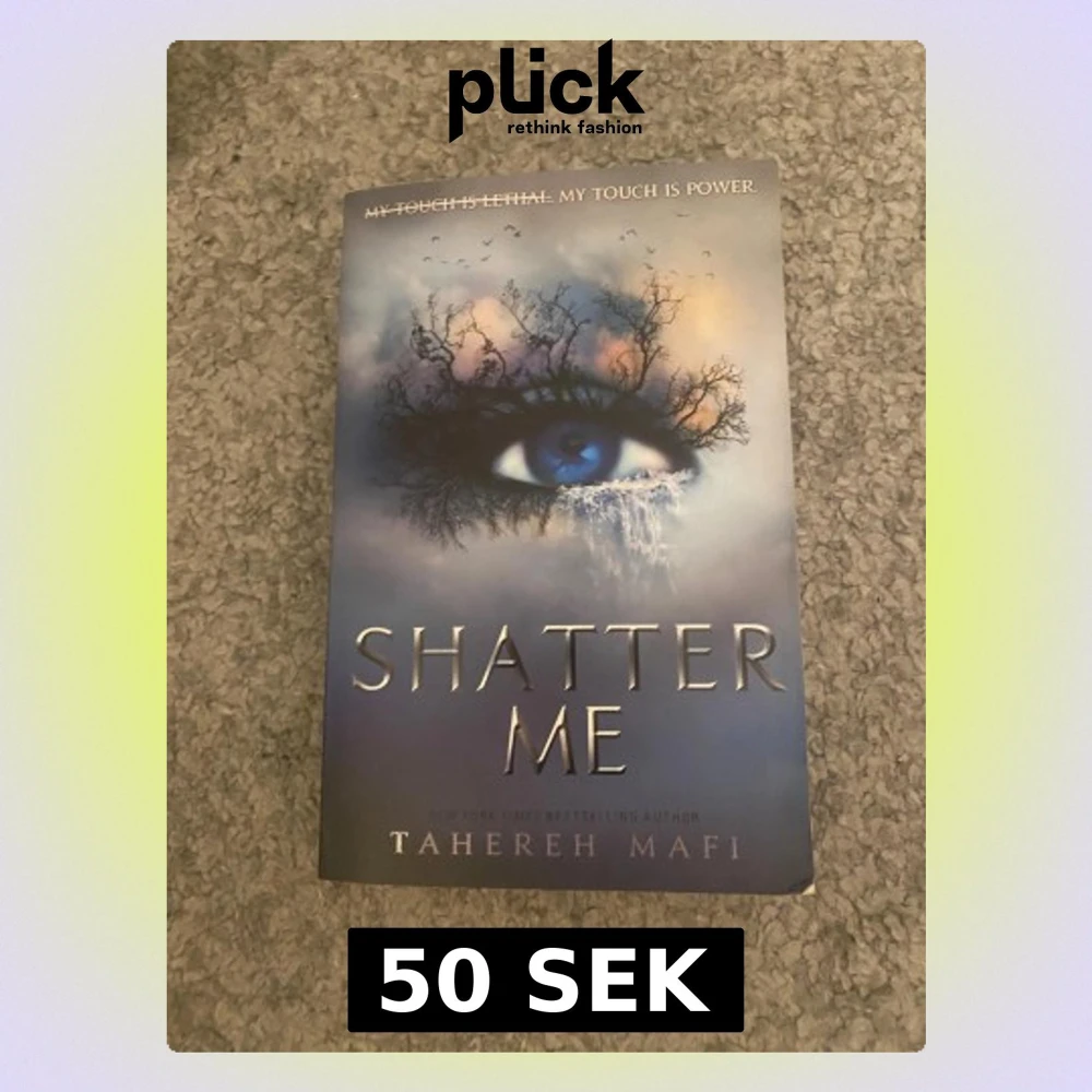En bok med ett mystiskt omslag som visar ett blått öga omgivet av trädgrenar och fåglar. Texten 'My touch is power' ger en känsla av spänning och övernaturliga krafter. Perfekt för dig som gillar intensiva berättelser och starka huvudpersoner. HELT NY