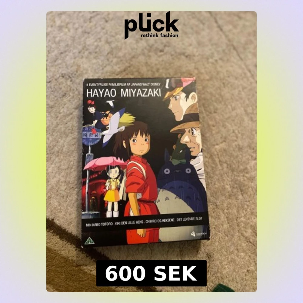 Upptäck fyra magiska animeklassiker av Hayao Miyazaki! Denna box innehåller Min nabo Totoro, Kiki den lille heks, Chihiro og heksene och Det levende slot – perfekta för dig som älskar äventyr, fantasy och vackra animerade världar.