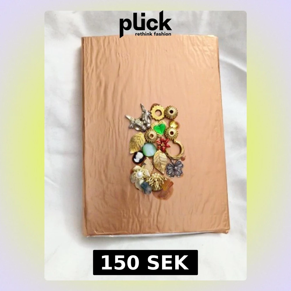 Unik anteckningsbok med handgjord dekoration på omslaget, perfekt för dig som vill ha något personligt och kreativt. Omslaget är i kopparfärg med detaljer som pärlor, löv och blommor. Inuti finns blanka sidor för dina idéer, skisser eller dagboksanteckningar. A6 storlek ca 100 sidor