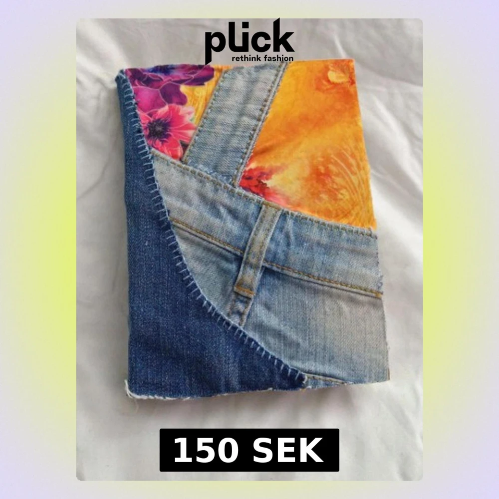 Unik anteckningsbok med omslag av återvunna jeans och färgglada tygdetaljer. Perfekt för dig som vill sticka ut och skapa egna berättelser, teckningar eller dagboksanteckningar. Grovt papper ger en kreativ känsla och jeansfickan på baksidan är perfekt för småsaker. A5 storlek ca 50 sidor