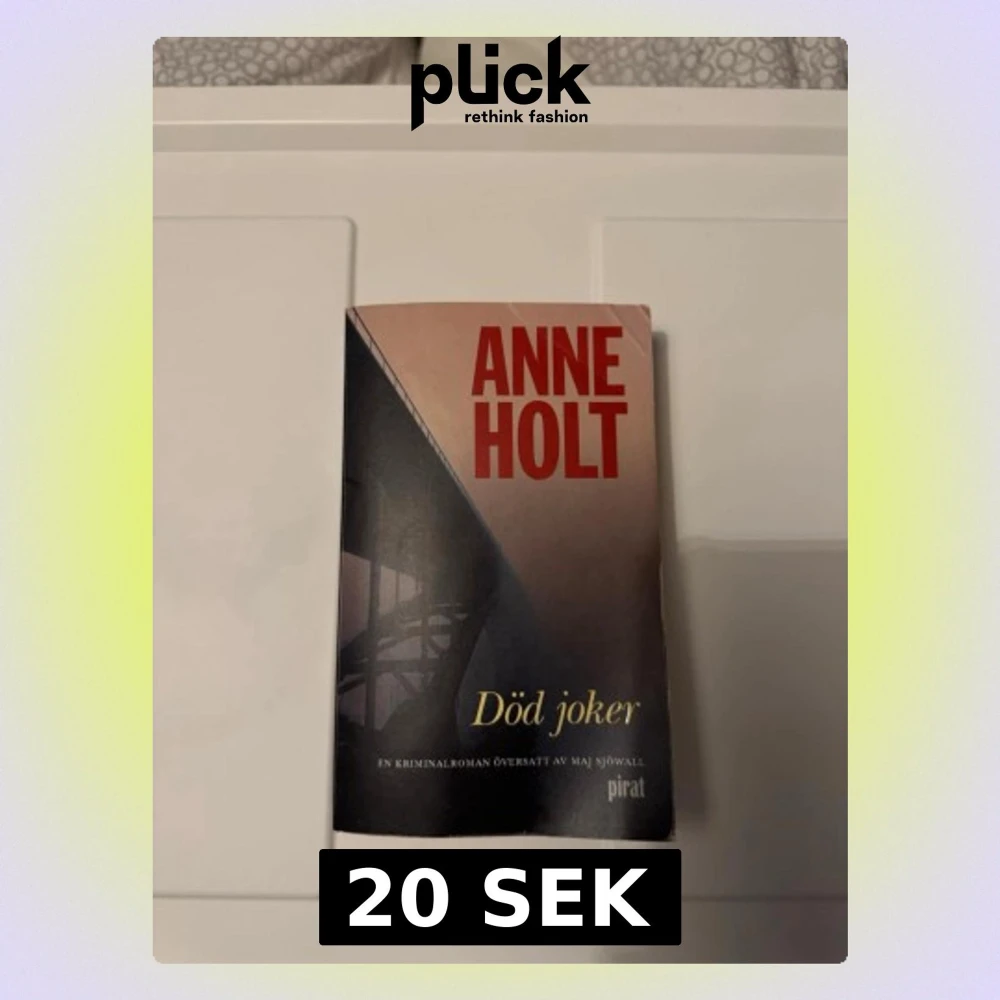 Spännande kriminalroman av Anne Holt med titeln 'Död joker'. Boken har ett omslag i mörka nyanser med röd och gul text. Pocketutgåva, tryckt på papper. Perfekt för dig som gillar deckare och nordisk spänning.