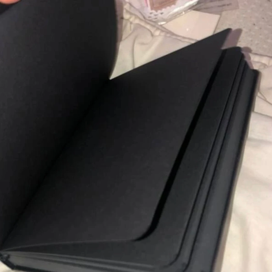 Så vacker bok men tjocka svarta blad, perfekt för att skriva på med vit penna eller klisra in bilder