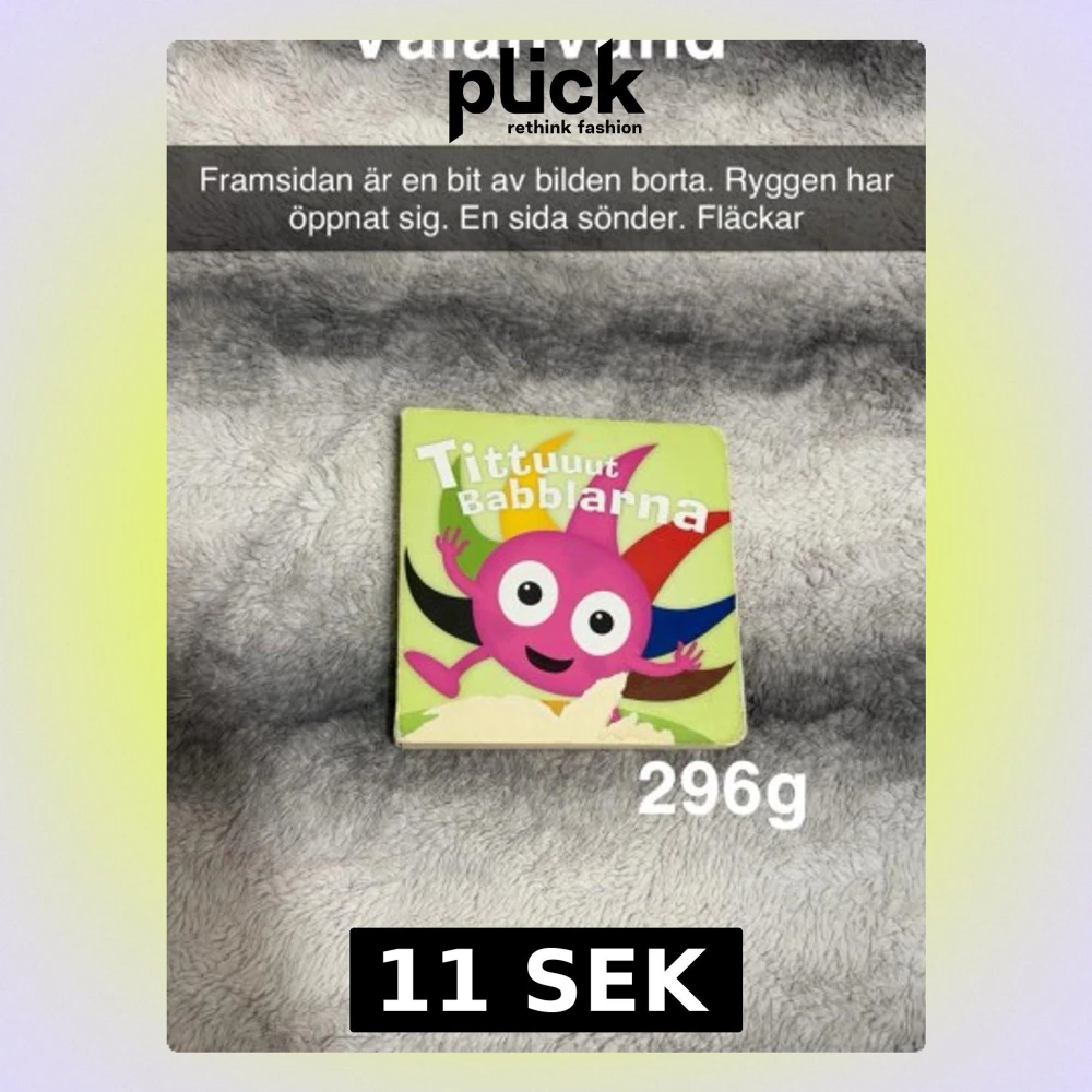 Upptäck Babblarna i denna färgglada och lekfulla bilderbok! Perfekt för dig som gillar roliga figurer och enkla berättelser. 🌸 Välläst. Framsidan har en bit av bilden åkt av. Ryggen har öppnat sig men sitter fast på bakre delen.en sida sönder. Fläckar. MAN KAN FÅ DENNA GRATIS VID KÖP AV NÅGOT ANNAT.
