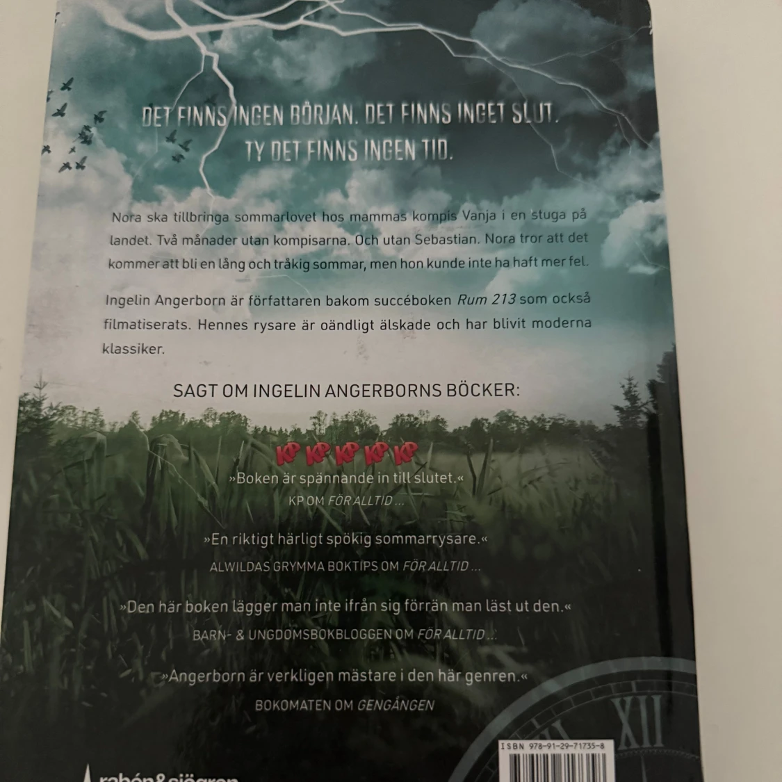 En spännande och mystisk bok om Nora som ska tillbringa sommaren på landet. Omslaget visar ett gammalt hus, mörka skogar och åskväder – perfekt för dig som gillar rysare och kusliga berättelser. Passar unga som vill ha en riktigt spännande sommarläsning.