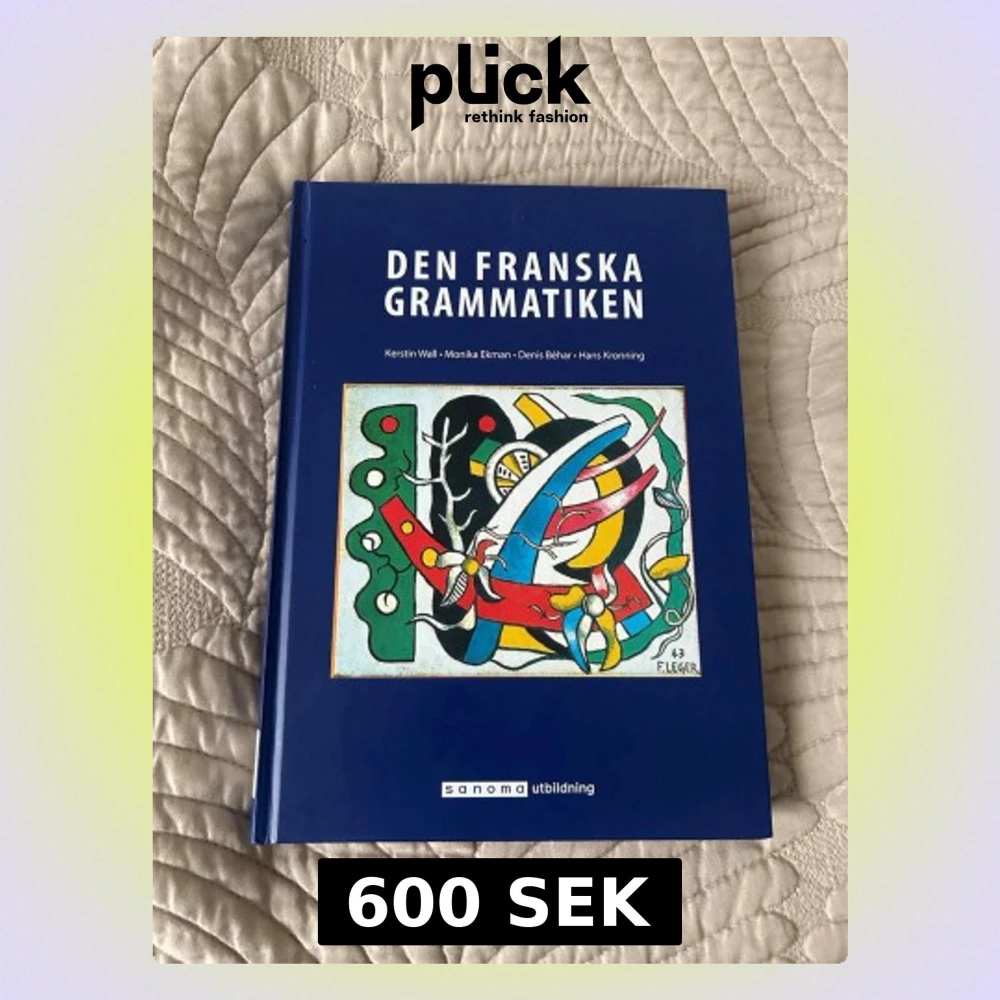 Blå kursbok i fransk grammatik med färgglad konst på omslaget. Skriven av Kerstin Wall, Monika Ekman, Denis Béhar och Hans Kronning. Perfekt för dig som pluggar franska och vill ha tydliga förklaringar och övningar.