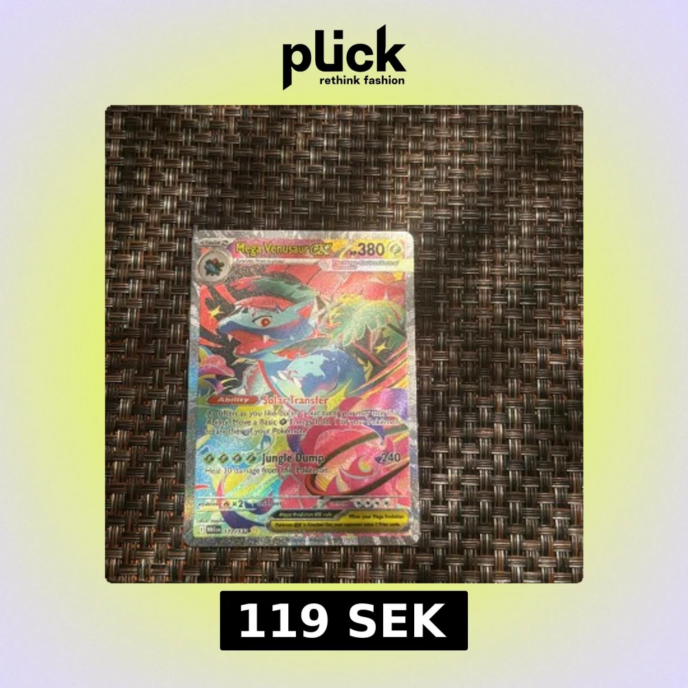 Mega Venusaur EX är ett glittrande och färgstarkt Pokémon-samlarobjekt med coola attacker som Solar Transfer och Jungle Dump. Perfekt för dig som älskar Pokémon och vill ha en unik och kraftfull kort i din samling. Passar både samlare och spelare som vill sticka ut!