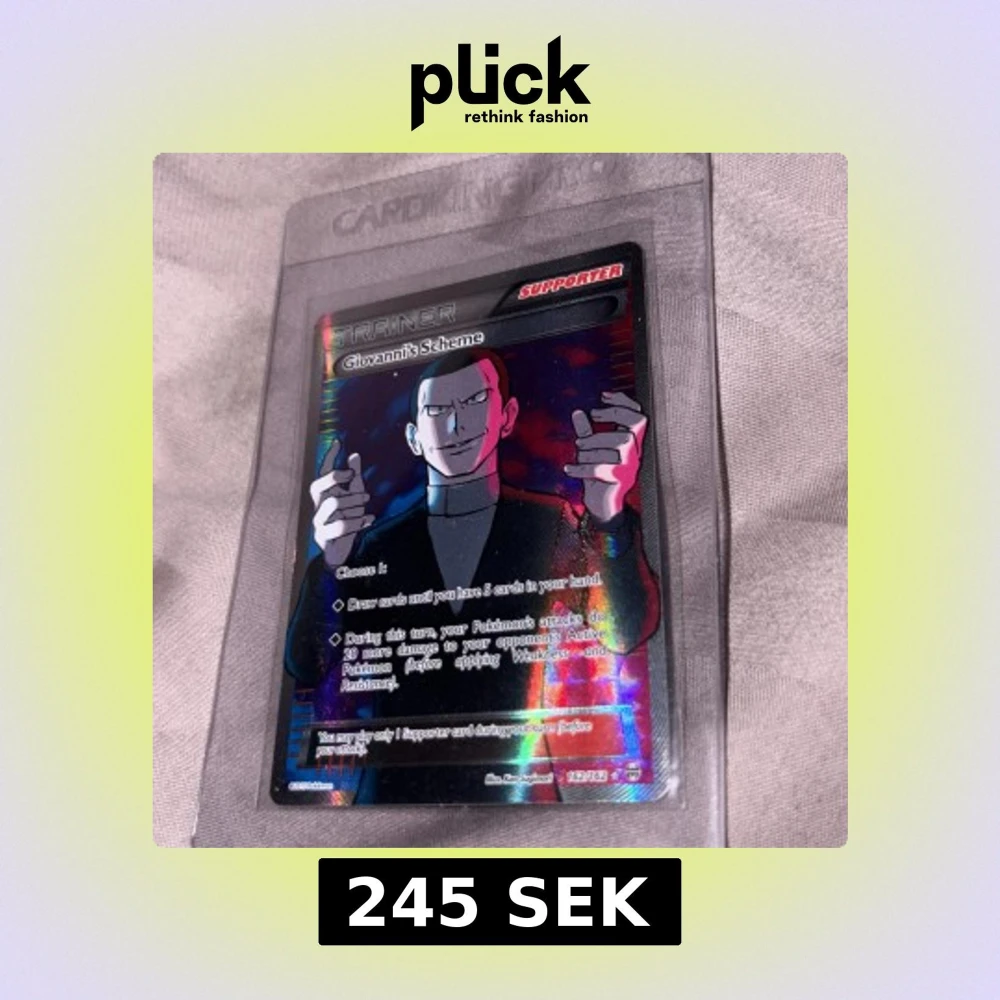 Cool och glittrig Pokémon-tränarkort: Giovanni's Scheme! Perfekt för samlare och spelare som vill boosta sitt deck. Kortet är i skyddsfodral och har snygg design med unika effekter för ditt spel. Ett måste för alla Pokémon-fans!