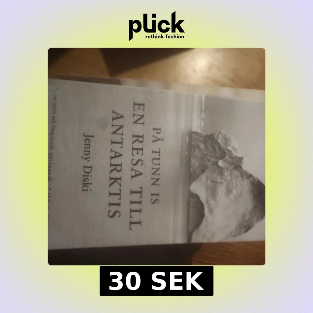 Boken 'På tunn is: En resa till Antarktis' av Jenny Diski handlar om en personlig och reflekterande resa till Antarktis. Omslaget visar en svartvit bild av isberg och hav, vilket speglar bokens tema av äventyr och introspektion.