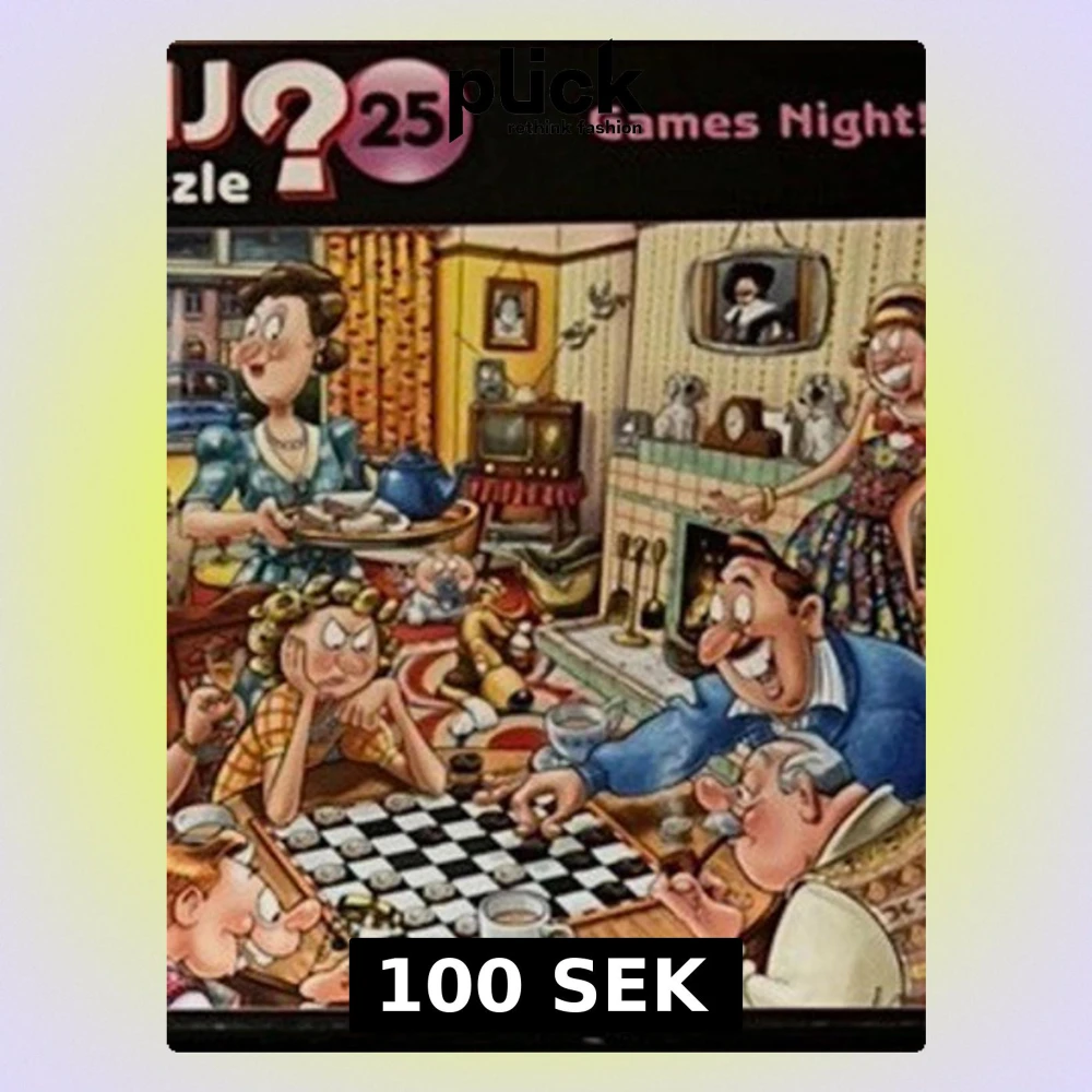Ett färgstarkt och humoristiskt pussel med ett kaotiskt brädspelskväll-tema. Perfekt för dig som gillar utmaningar och vill ha kul med vänner eller familj. Illustrationerna är fulla av roliga detaljer och passar både unga och vuxna.