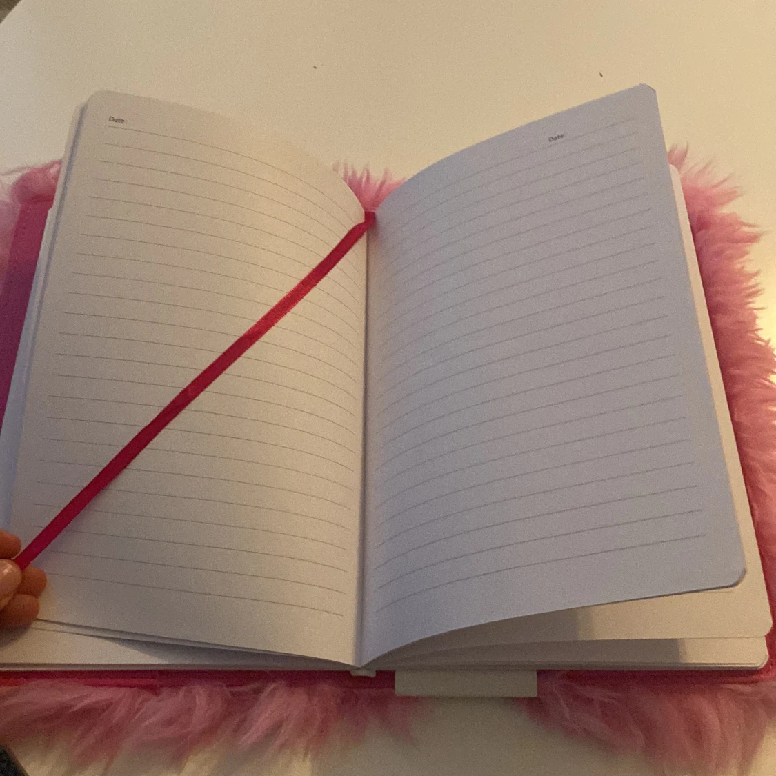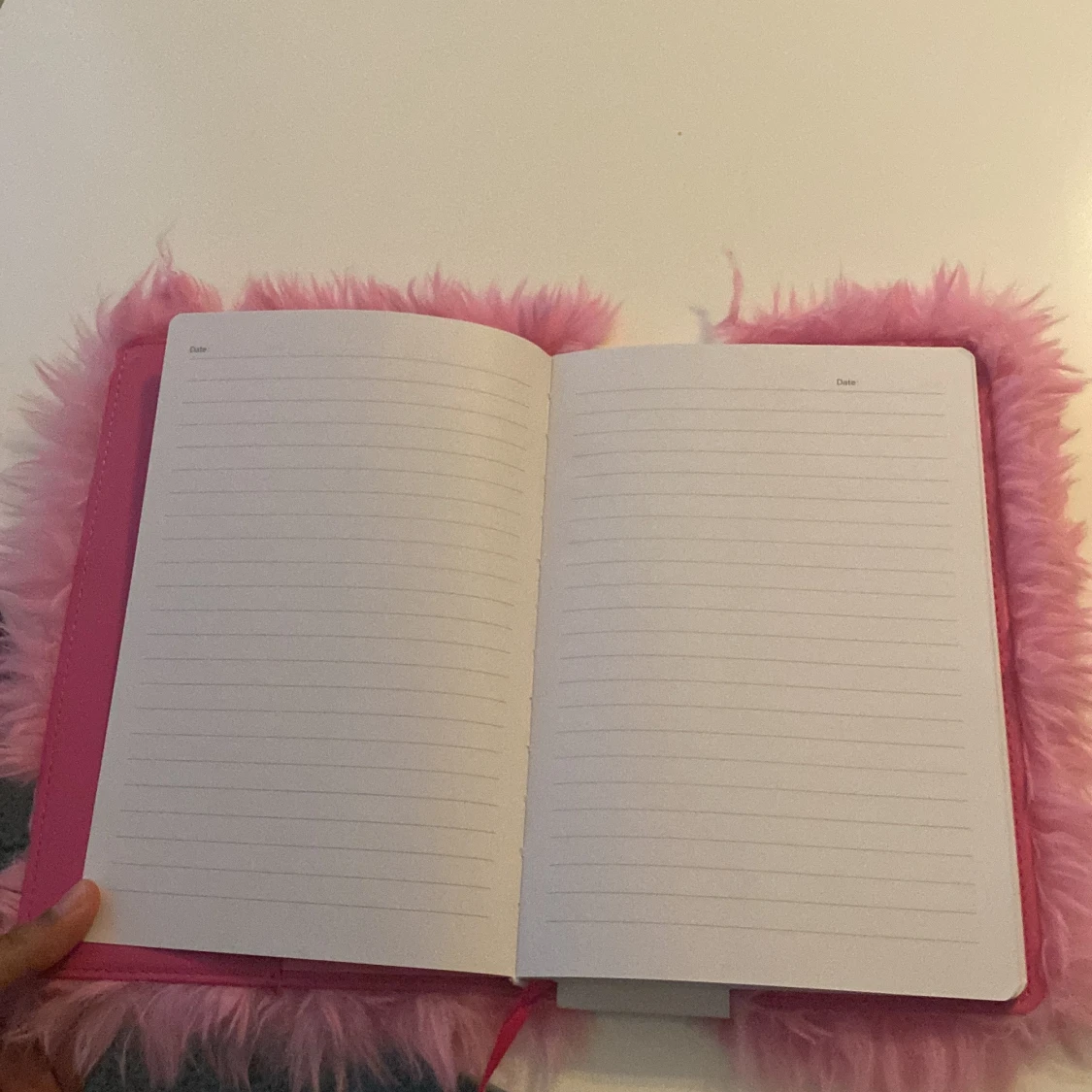 Unik anteckningsbok med fluffigt rosa omslag och ett coolt broderat jordklot på framsidan. Perfekt för dig som vill skriva ner viktiga saker, eller bara som en dagbok. Den har ett bokmärke med. Den har bara varit i mitt rum helt orörd därför vill jag sälja den.
