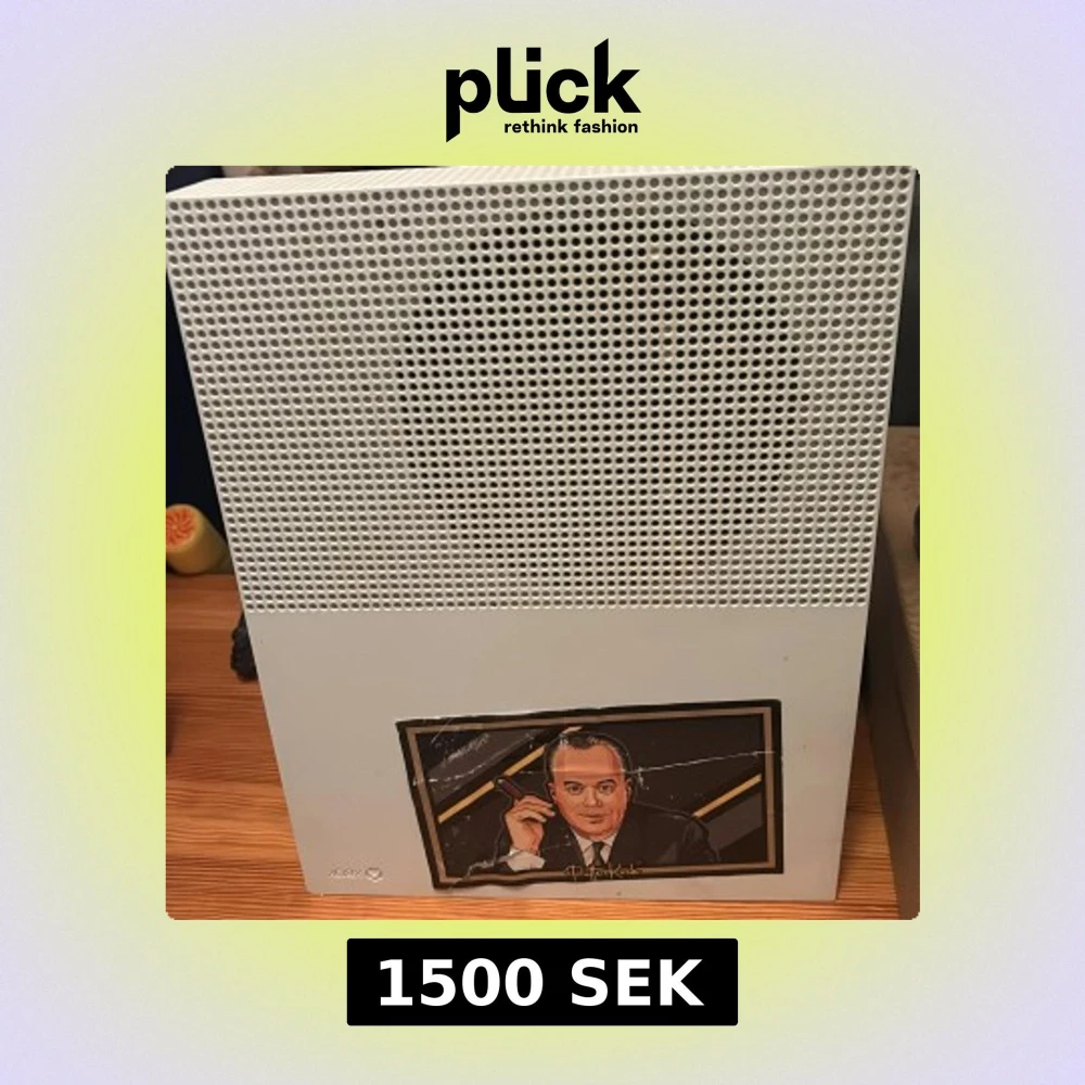 Bilderna visar en Xbox One S-spelkonsol med en unik klisterdekal på framsidan. Det finns ingen bok synlig på bilderna, endast spelkonsolen och dess detaljer. Ingen information om någon boktitel eller författare kan utläsas.