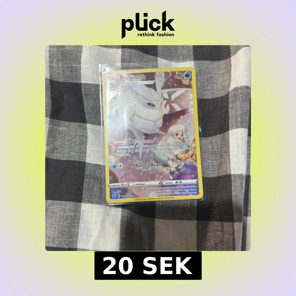 Samlarkort med Frosmoth, en is-inspirerad Pokémon. Kortet har färgstark design och visar Frosmoth i en glittrig miljö. Perfekt för dig som gillar Pokémon och vill utöka din samling med ett snyggt och unikt kort.