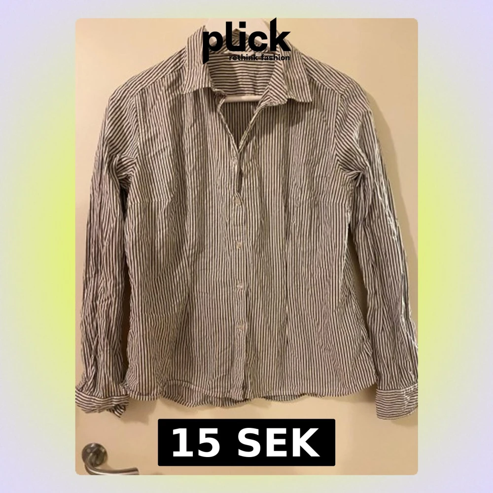Snygg skjorta från HM i storlek 44 med klassiskt svartvitt randigt mönster. Skjortan har lång ärm, knappar framtill och en krage. Tillverkad i mjuk bomull som känns skön mot huden. Perfekt för dig som gillar stilrena och tidlösa plagg.