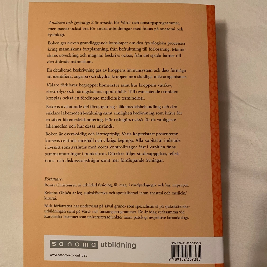 Kurslitteratur: Anatomi och fysiologi 2 senaste version. Oanvänd