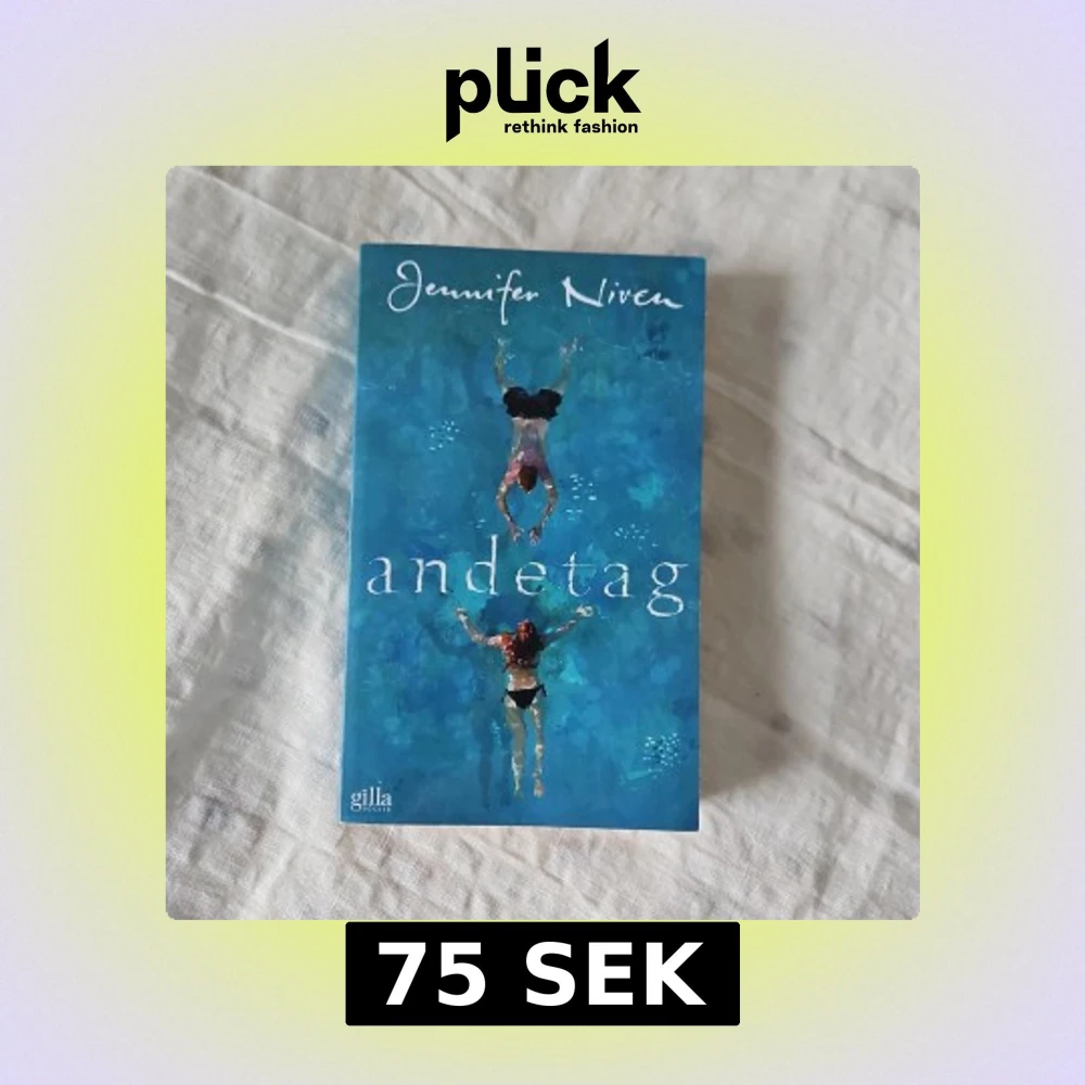 Boken 'Andetag' av Jennifer Niven, utgiven av Gilla Böcker, har ett omslag i blått med illustrationer av två simmande personer. En berättelse om sommar, relationer och självupptäckter.