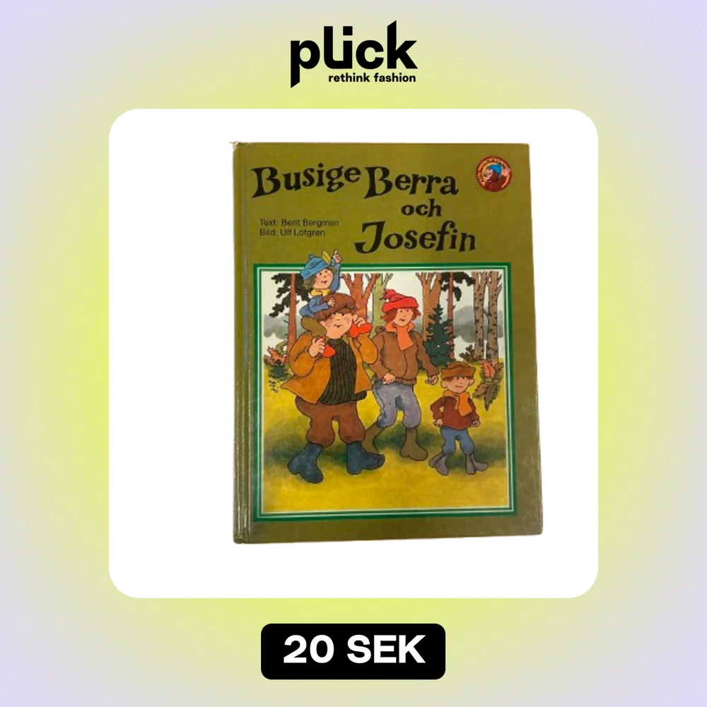 En charmig barnbok med titeln 'Busige Berra och Josefin' av Berit Bergman, illustrerad av Ulf Löfgren. Omslaget är grönt med en illustration av karaktärerna i en skogsmiljö. Perfekt för barn som älskar äventyr och busiga berättelser!
